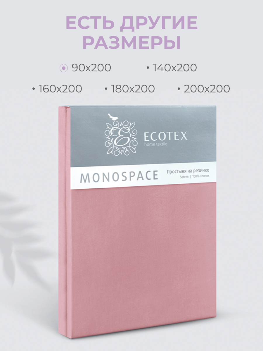 Простынь на резинке Ecotex "Моноспейс", сатин - 100% хлопок, 90х200х23, бузина