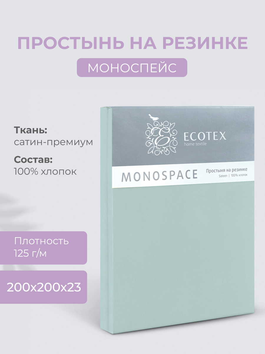 Простынь на резинке Ecotex "Моноспейс", сатин - 100% хлопок, 90х200х23, бузина
