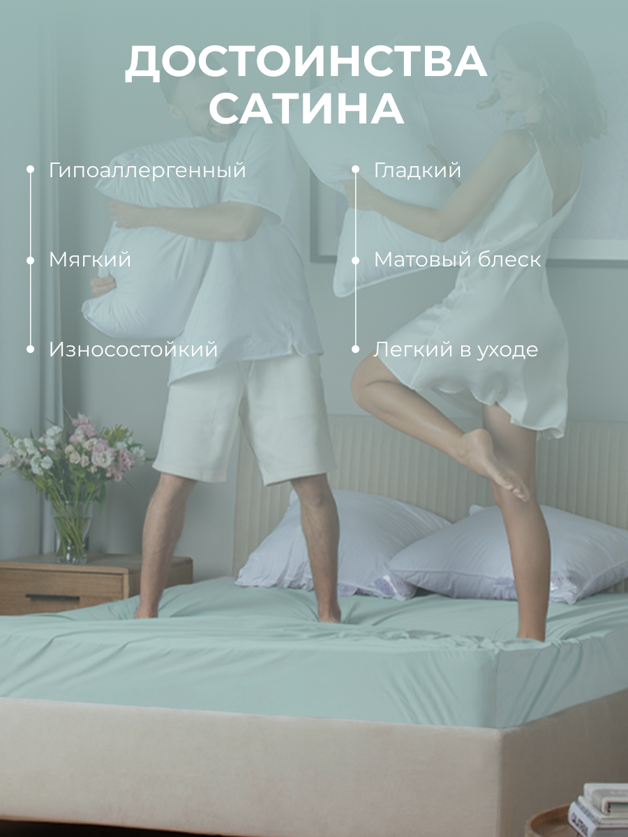 Простыня на резинке Моноспейс ECOTEX "Салатовый", 200*200*23, сатин