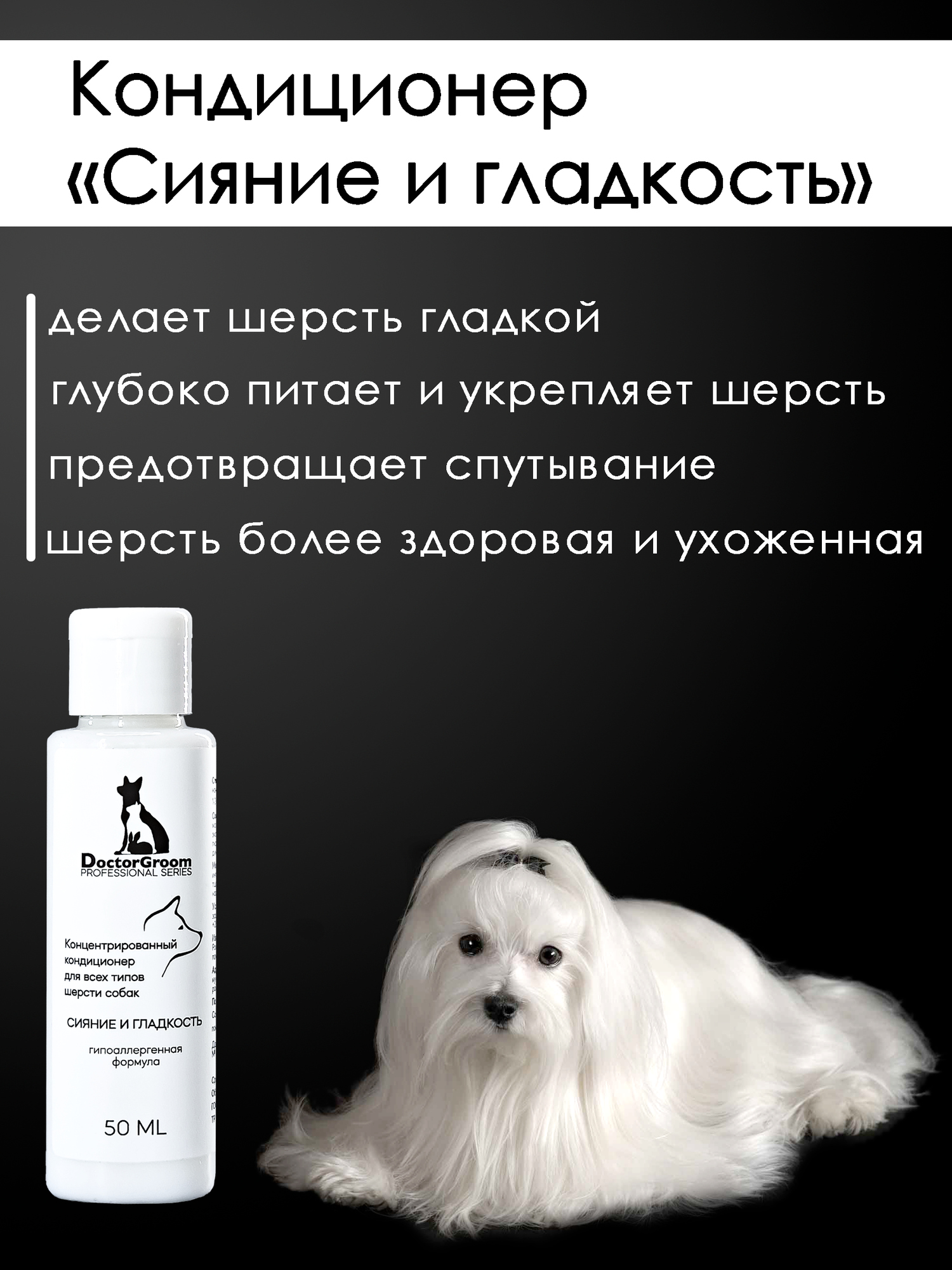 Шампунь для белой шерсти собак Doctor Groom, для светлых окрасов, увлажняющий, гипоаллергенный, универсальный, для всех пород и типов шерсти, 200мл