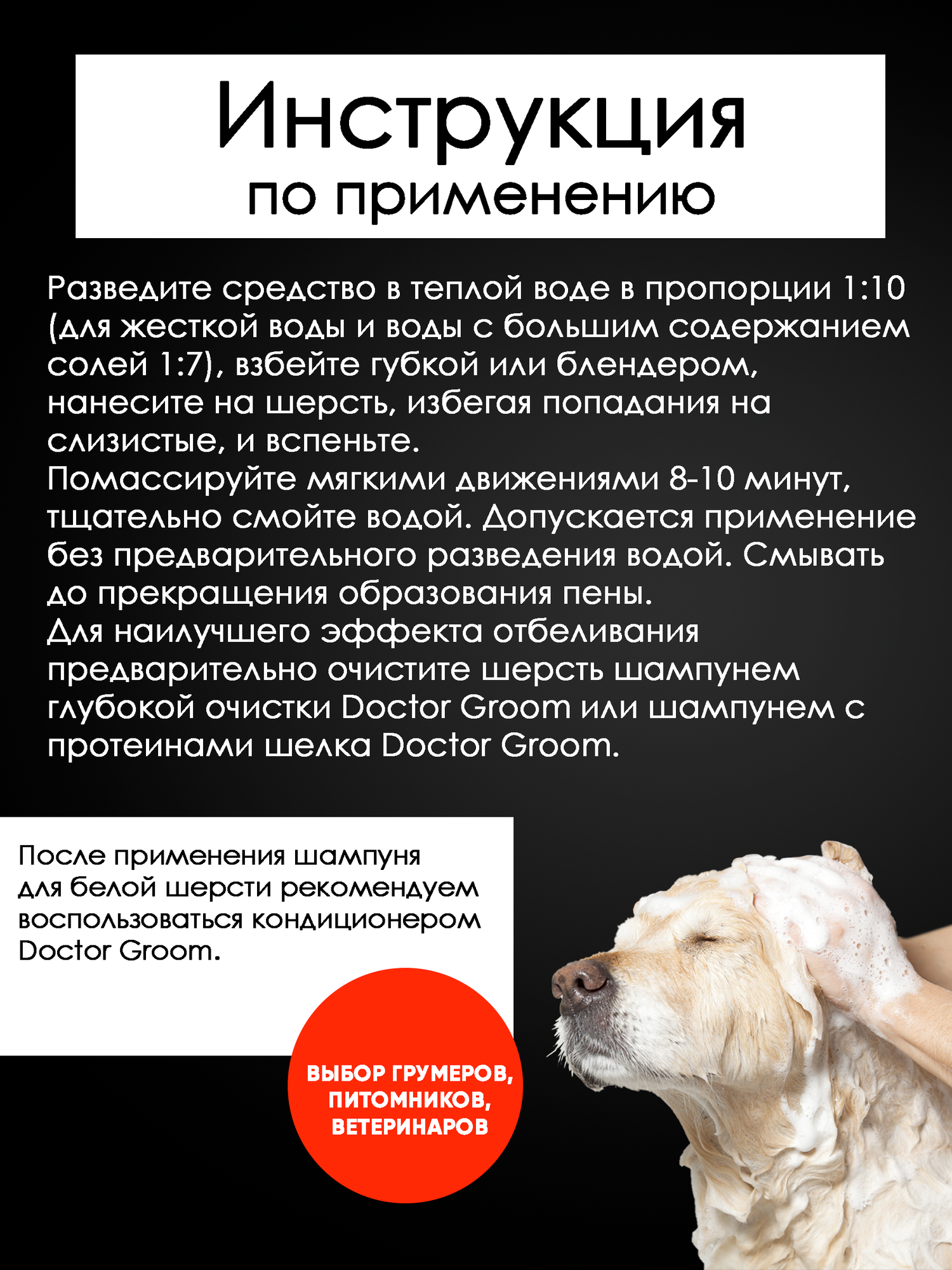 Купить Шампунь Doctor Groom для белой шерсти собак, для светлых окрасов, увлажняющий, гипоаллергенный, универсальный, для всех пород и типов шерсти, 400мл
