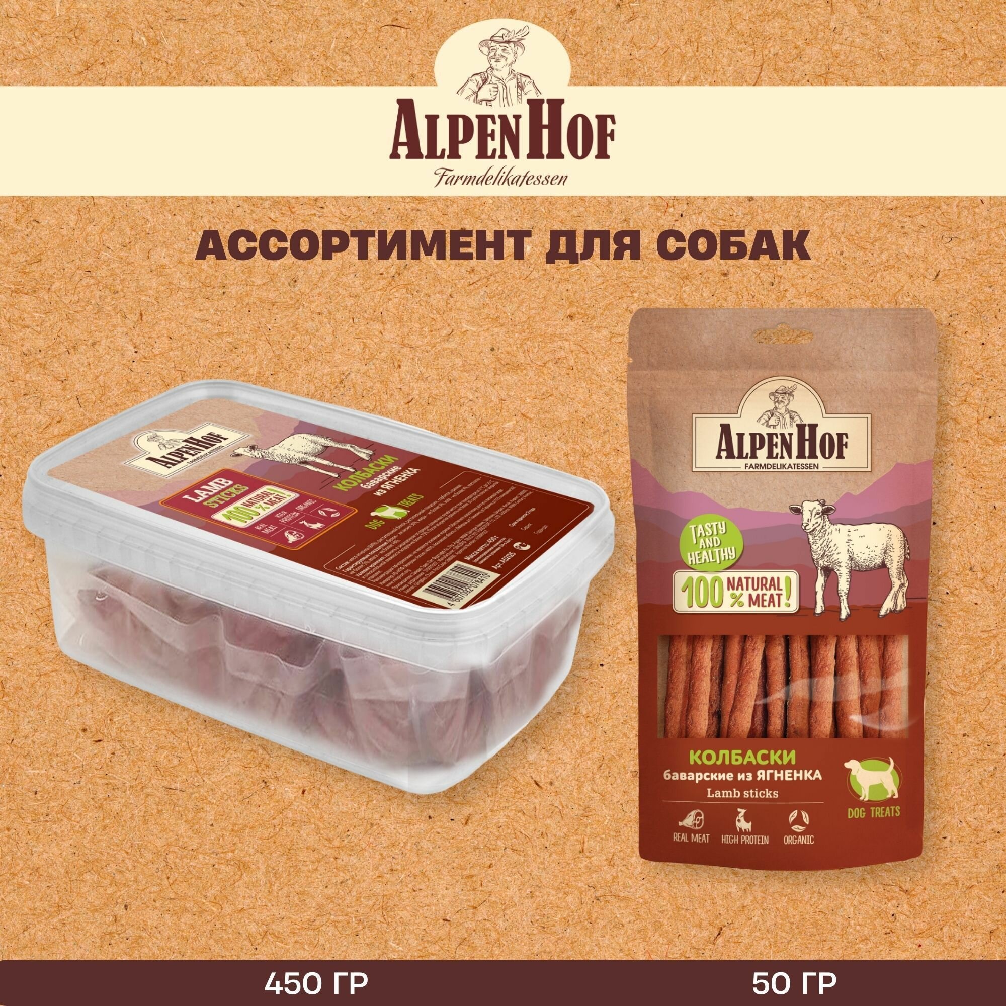 AlpenHof лакомство для собак Колбаски баварские из ягненка для собак АльпенХоф, 450 г. интересное: