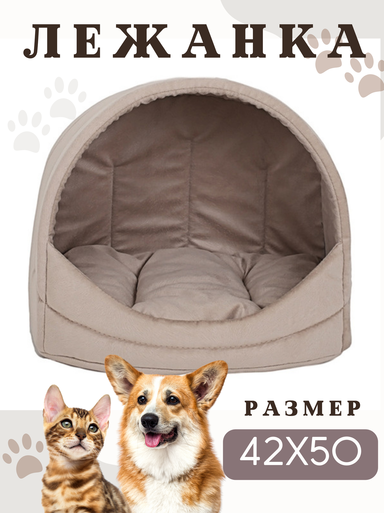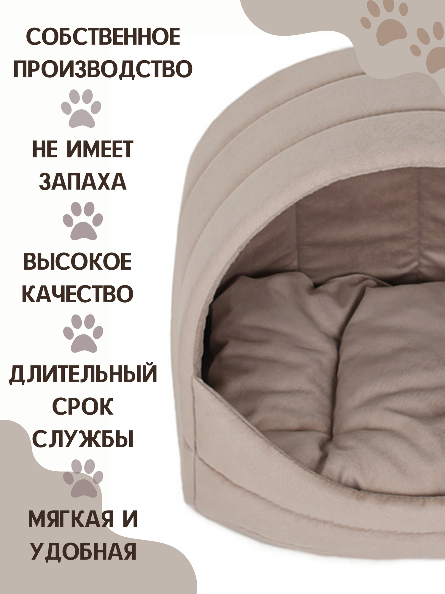 СохранитьЛежанка домик для кошек, для собак мелких и средних пород, лежак для животных, со съёмной подушкой, цвет: бежевый, 42x50 см интересное: