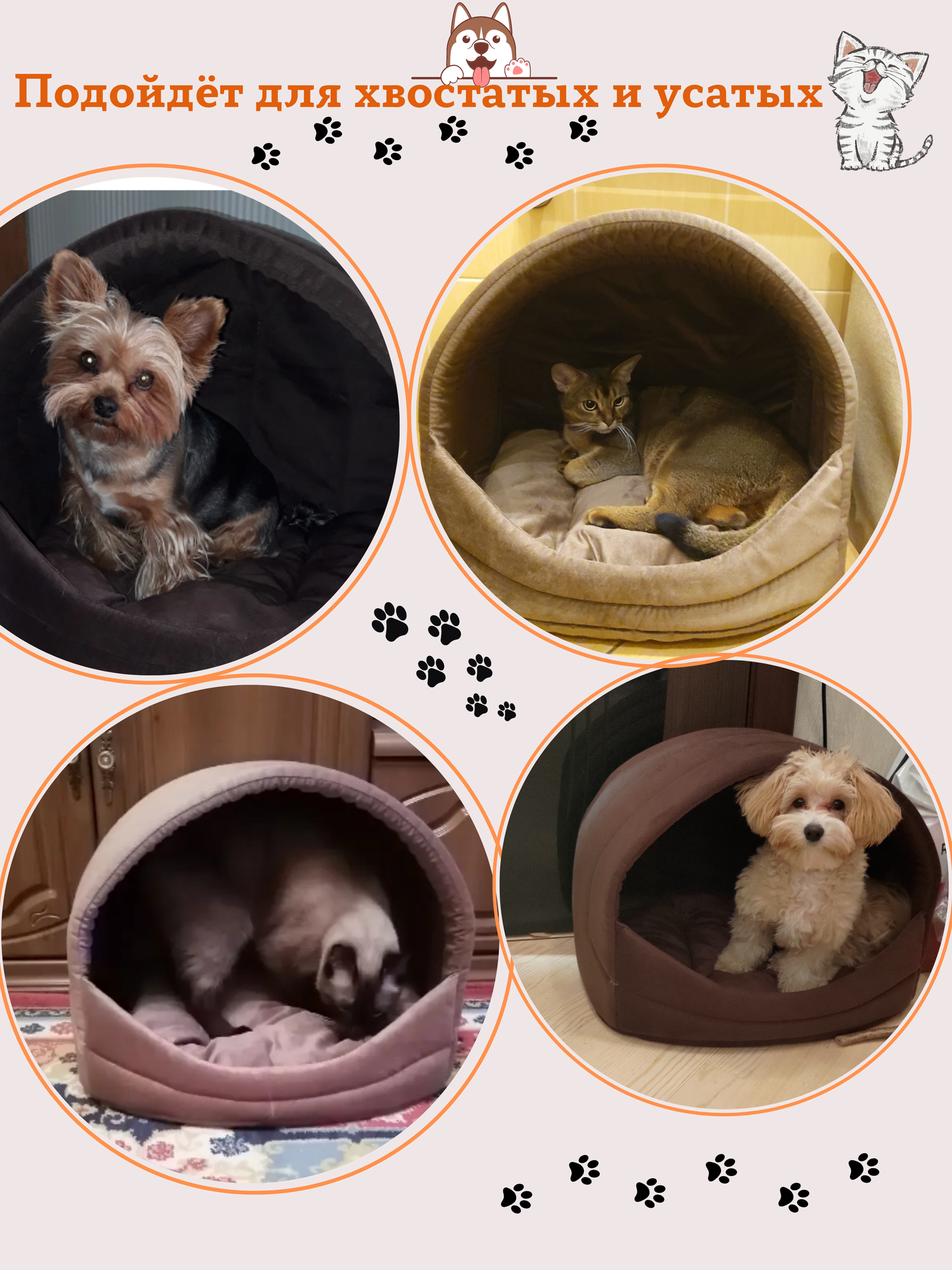 Лежанка домик для кошек, для собак мелких и средних пород, лежак для животных, со съёмной подушкой, цвет: коричневый, 42x50 см