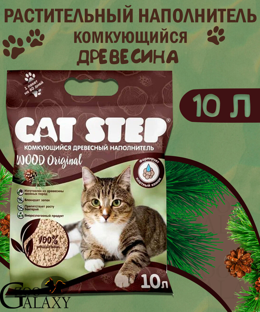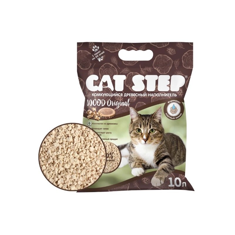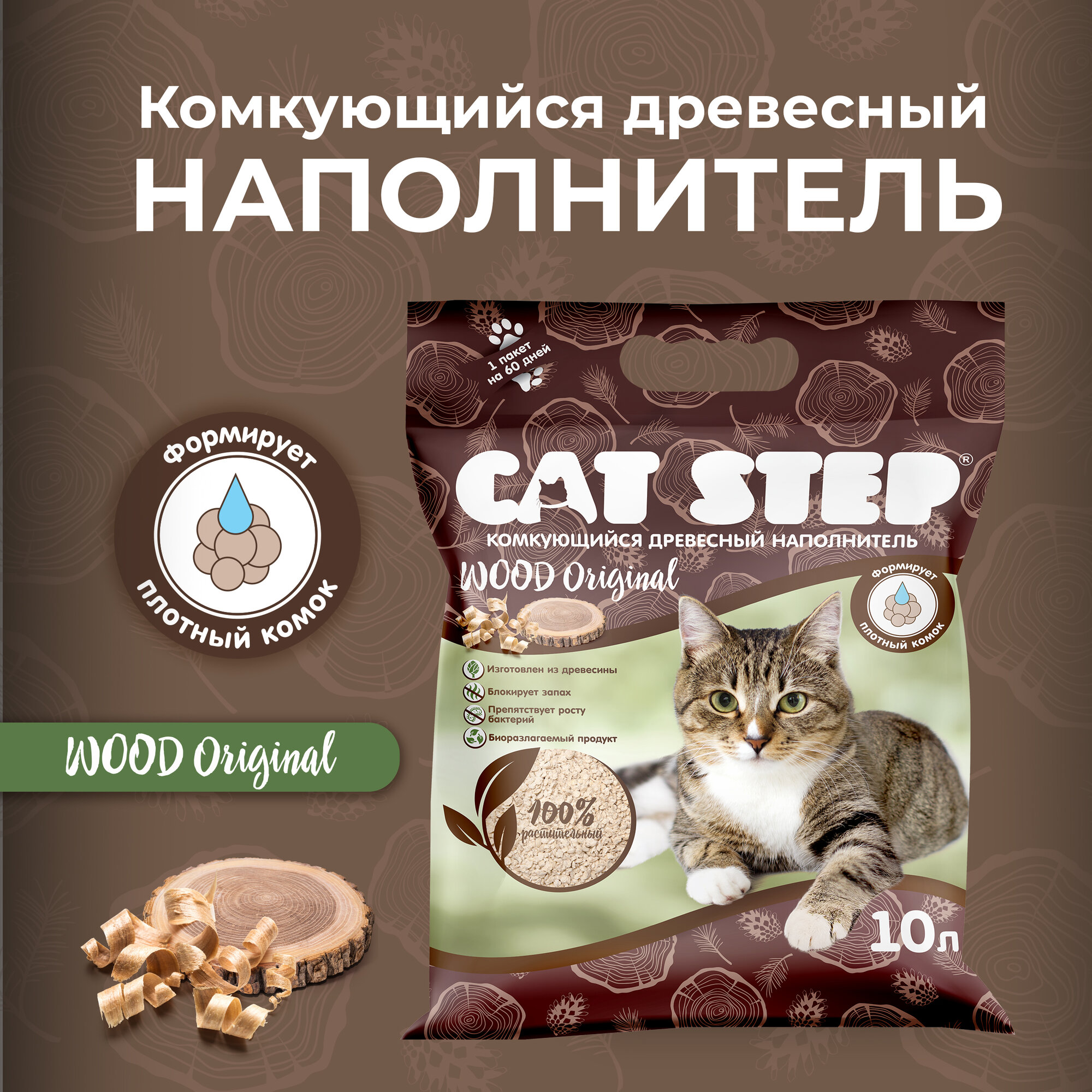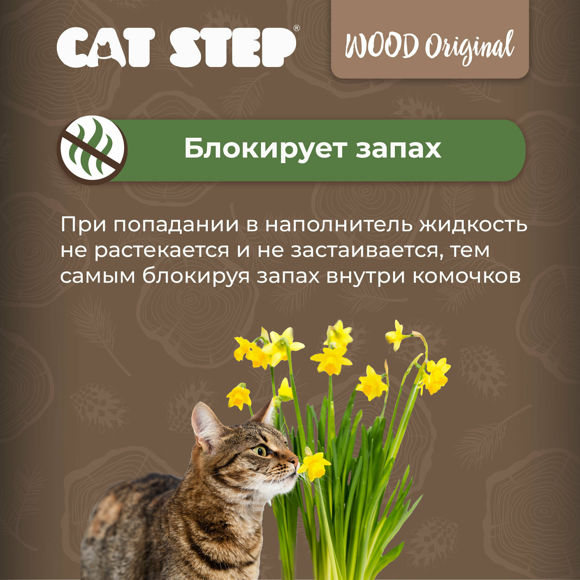 Наполнитель для кошачьего туалета комкующийся растительный CAT STEP Wood Original, 10 л