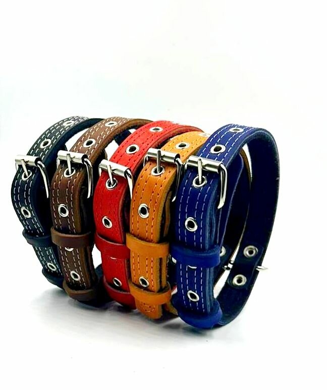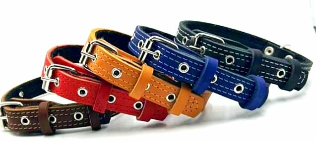 Ошейник из натуральной кожи на ватине для собак средних пород и щенков. Ширина 20 мм, длина 50 см, объём шеи 35-45 см. интересное: