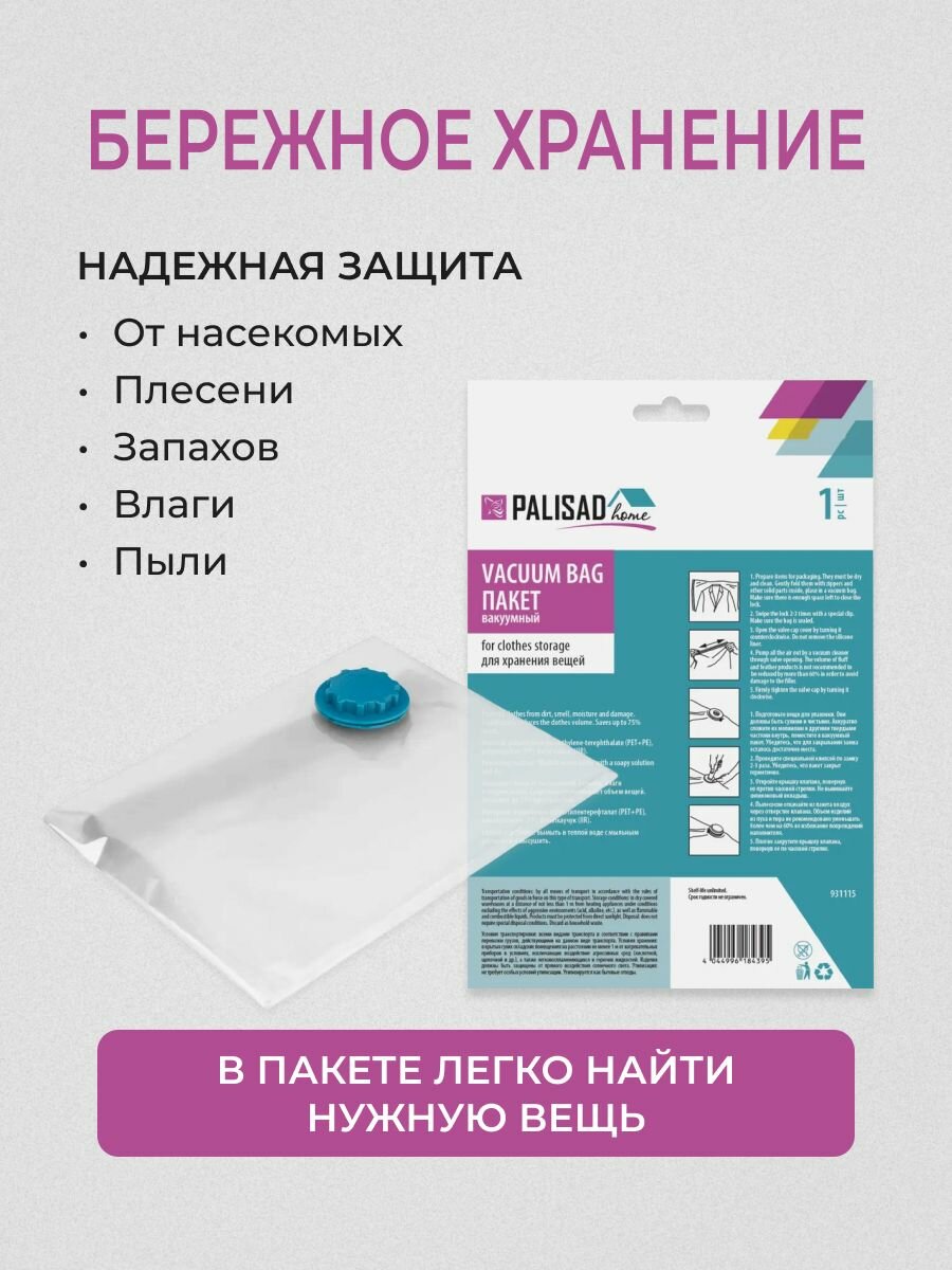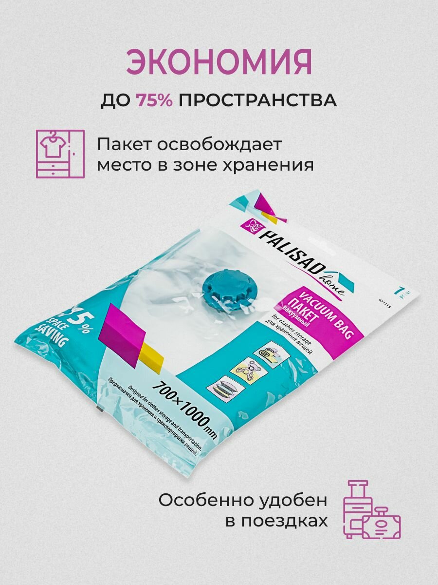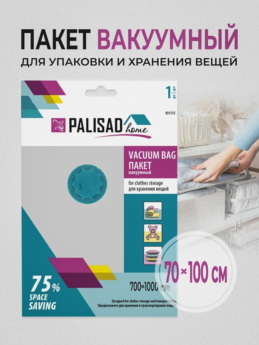 Вакуумный пакет для упаковки и хранения вещей Palisad Home 70х100 см 931115 интересное:
