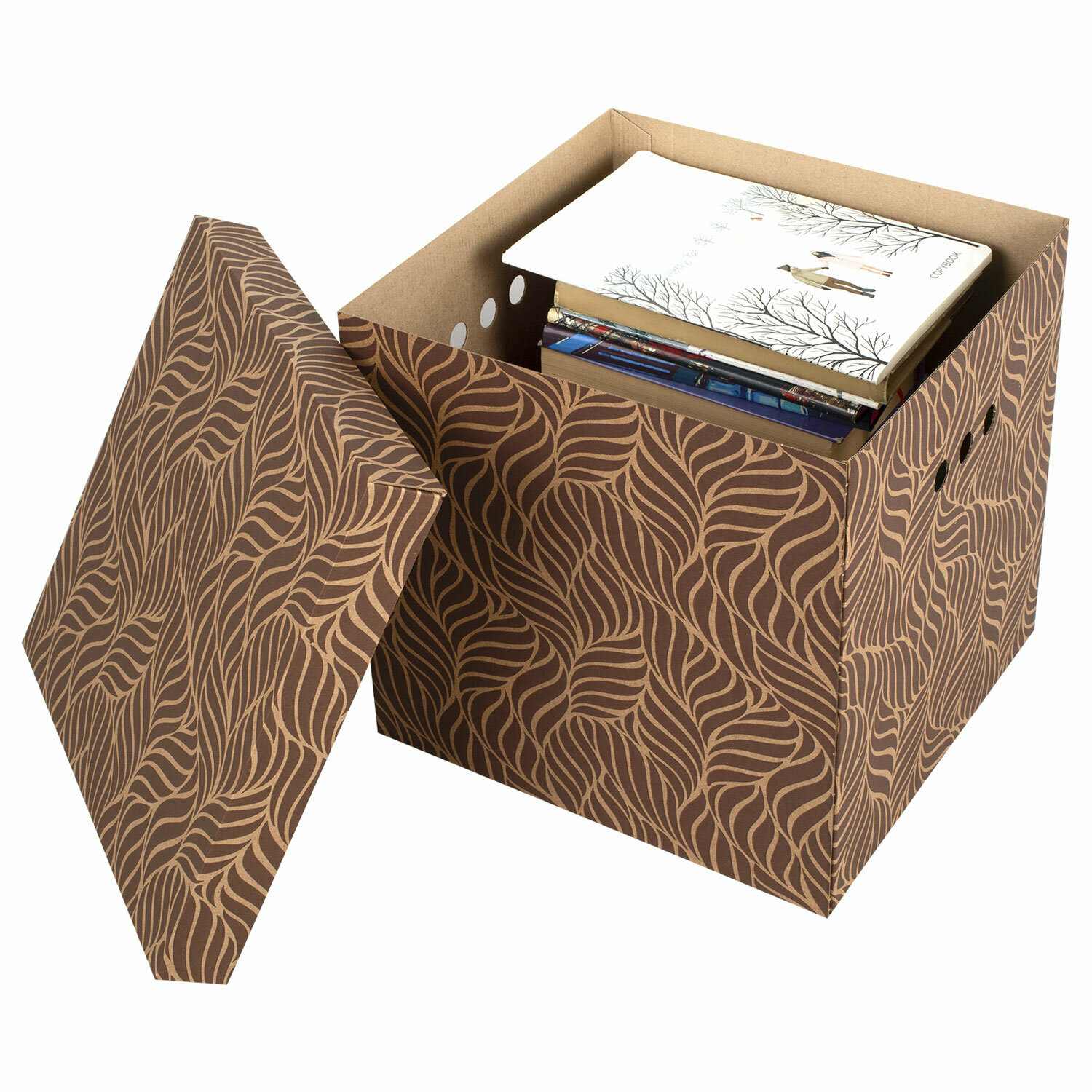 Коробки для хранения вещей картонные с крышкой 315х315х315 мм, 3 штуки, BRAUBERG HOME Узор, 271820