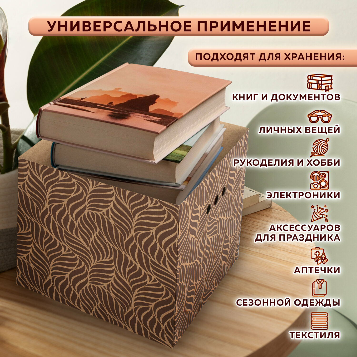 Коробка для хранения вещей с крышкой, короб для хранения стеллажный, корзина, ящик, 28*30*16 см, VALIANT BOTANIC