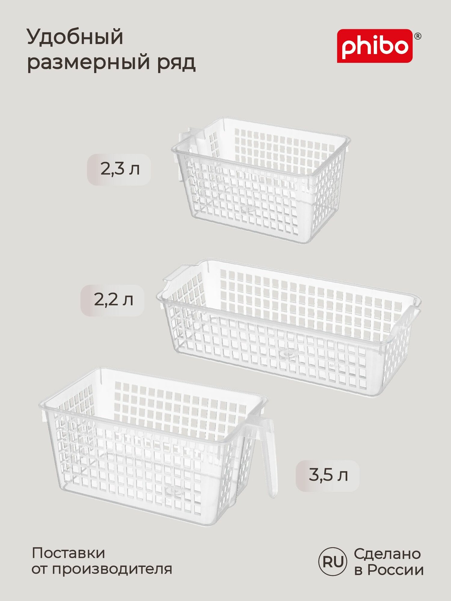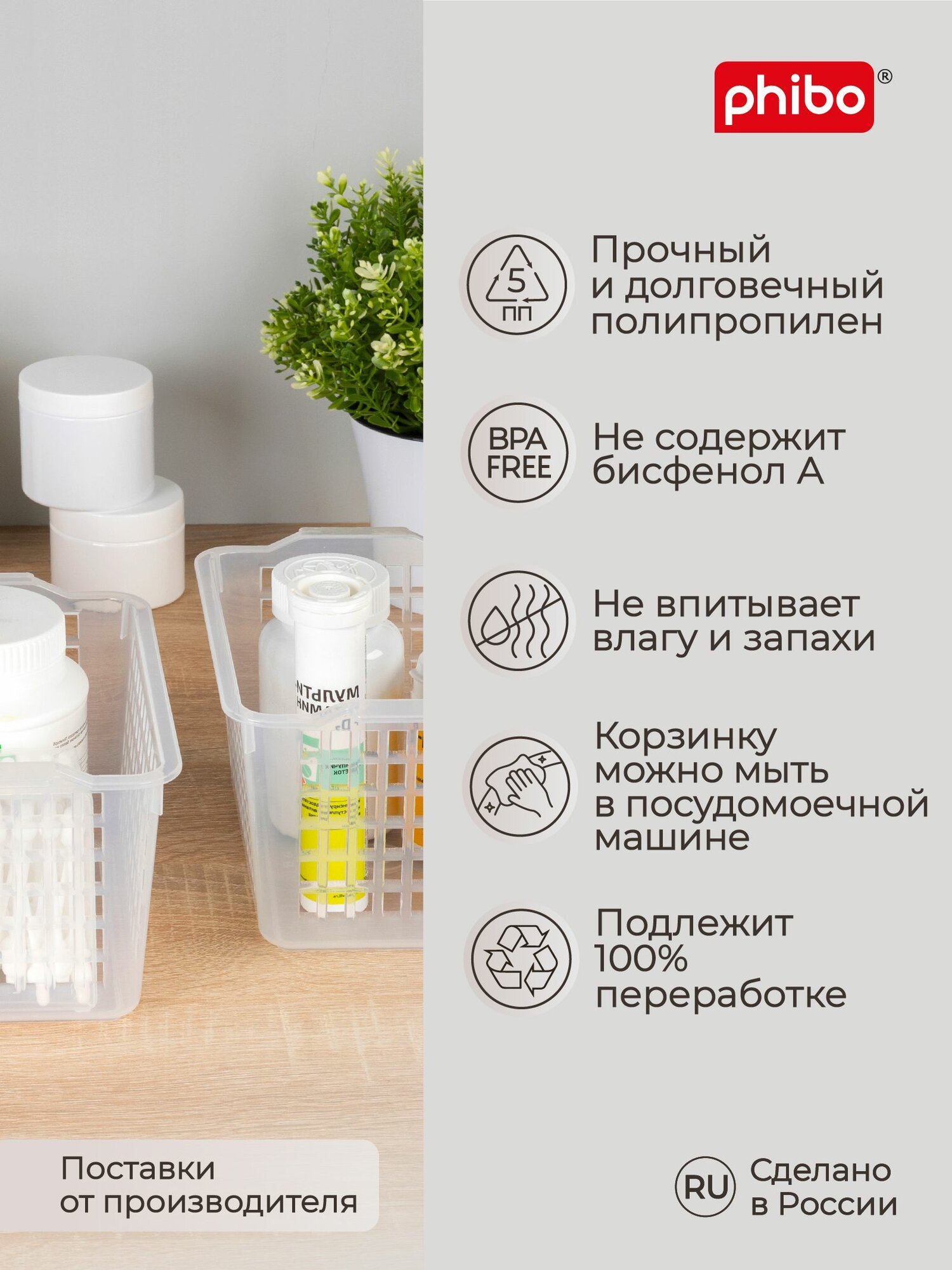 | Комплектация | Набор корзинок универсальных для холодильника 2 шт (Прозрачный), Phibo |