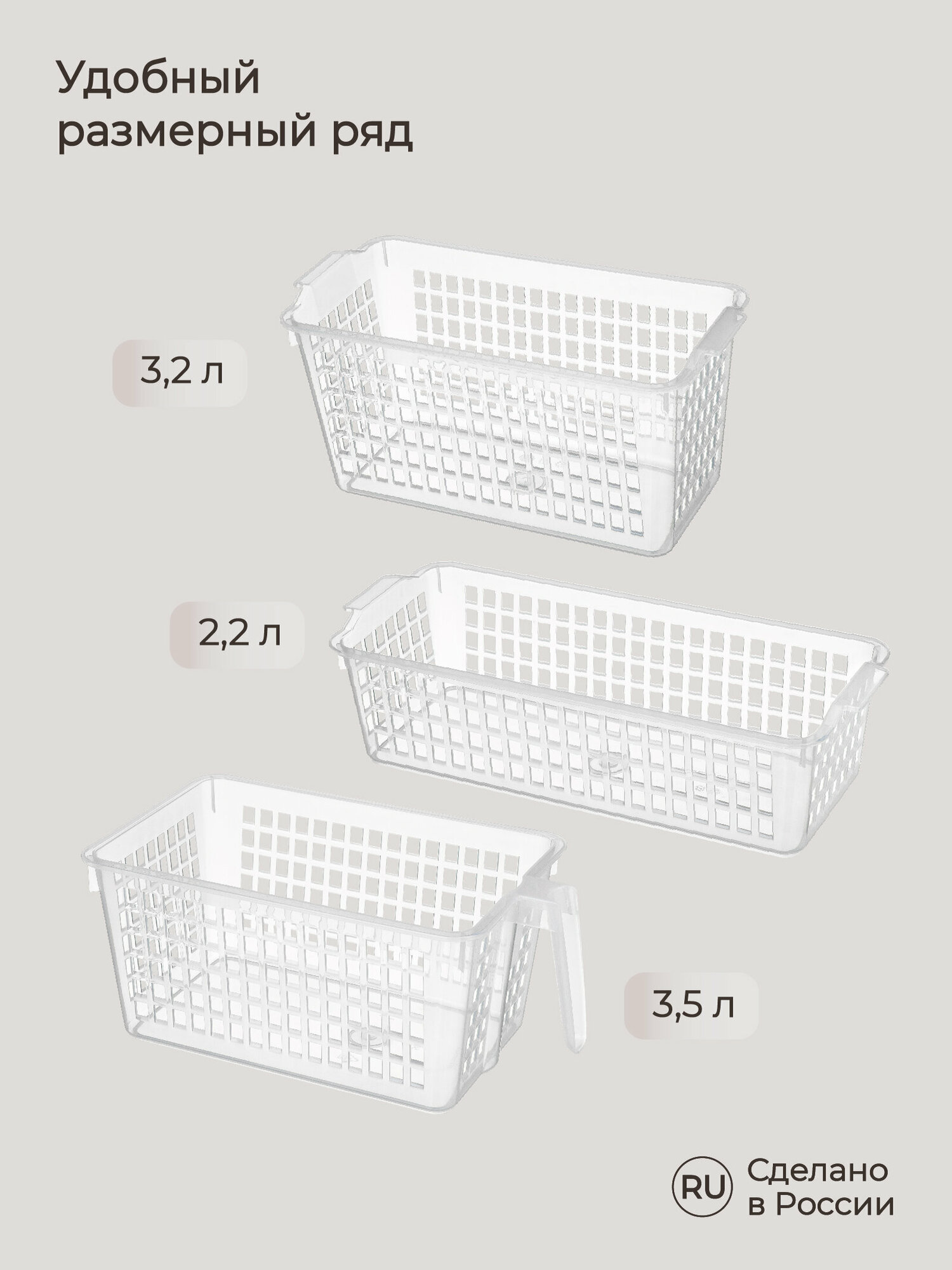 | Комплектация | Комплект корзинок 3,2л - 3 шт в комплекте |