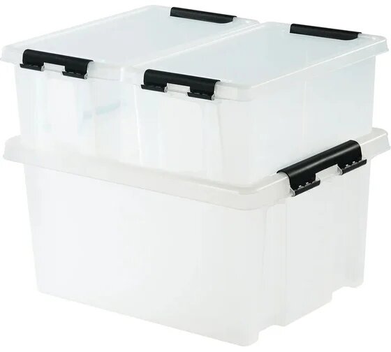 Контейнер Rox Box 58x39x35 см 70 л пластик с крышкой и роликами цвет прозрачный - Набор из 3 шт.