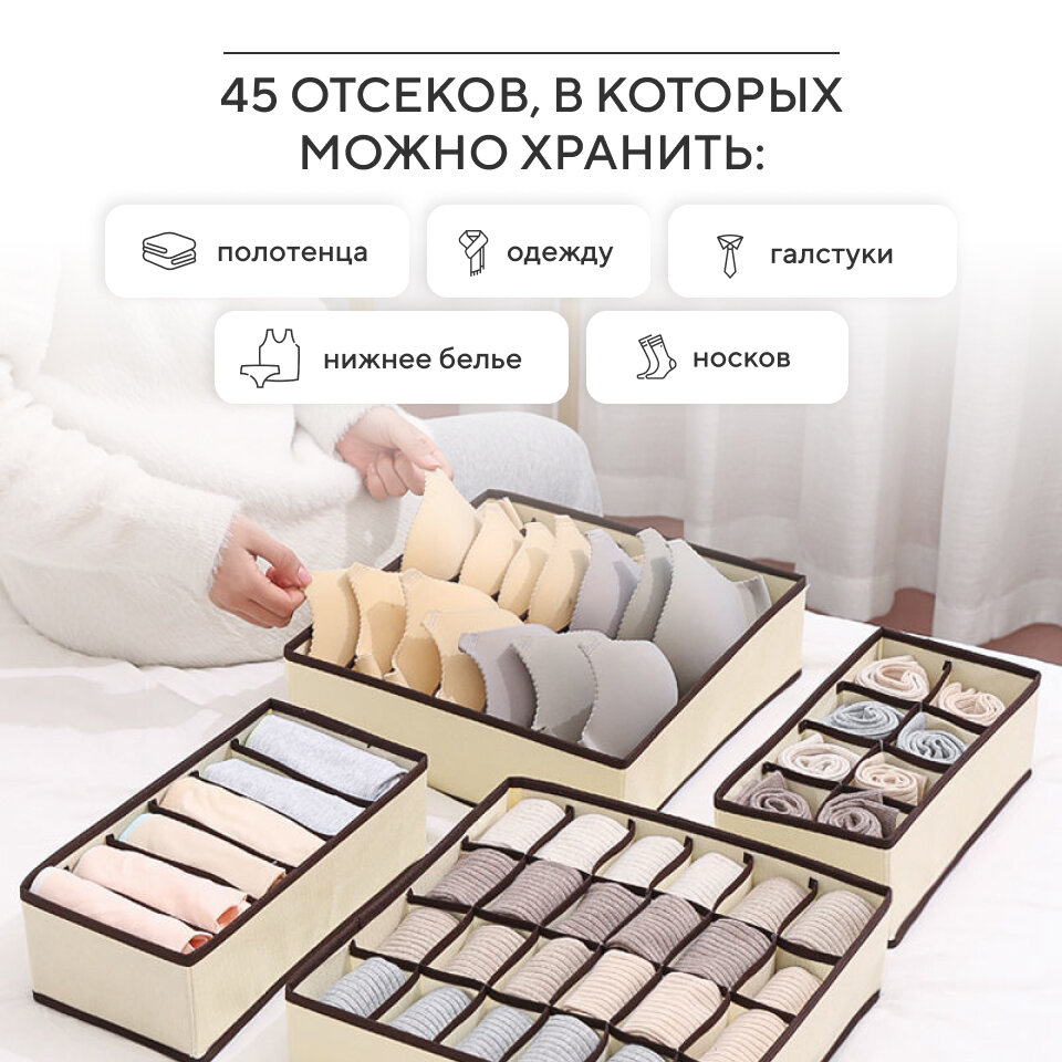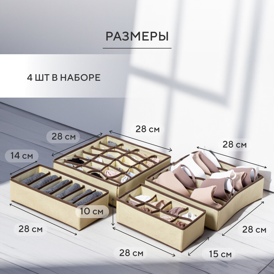 Органайзеры для вещей и белья Hausland, набор 4 шт, бежевый интересное: