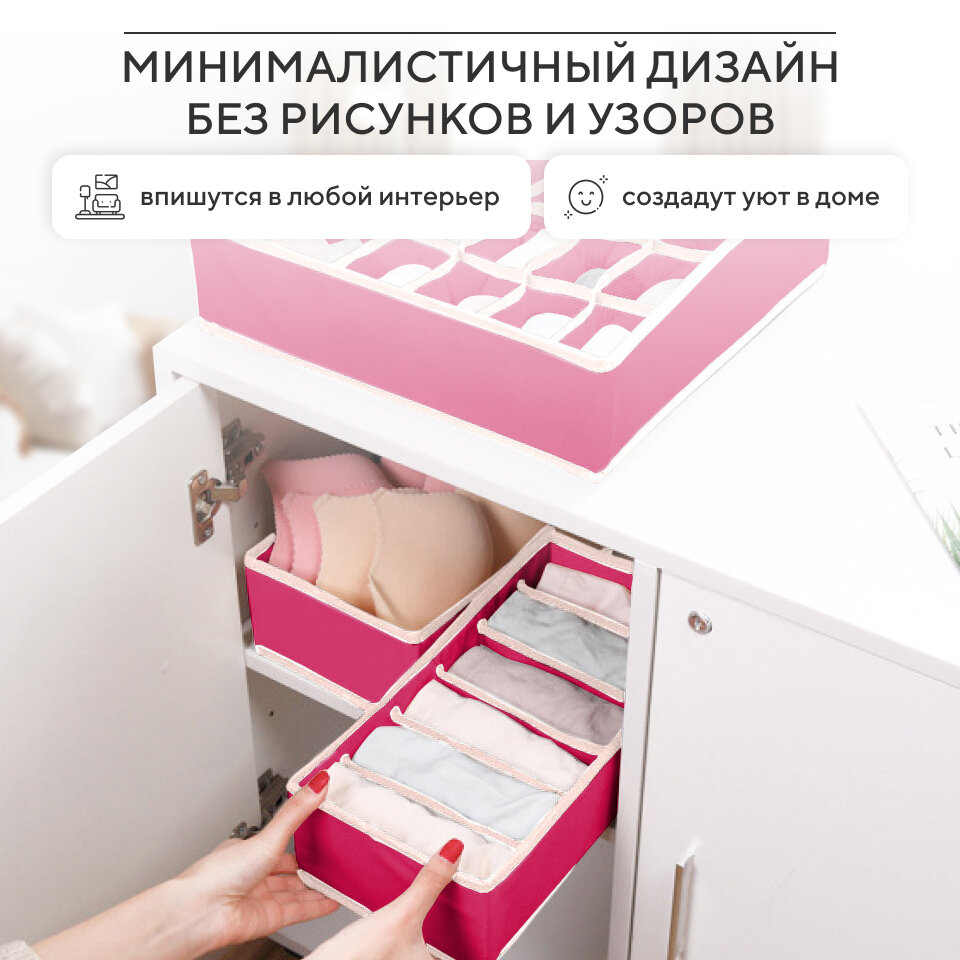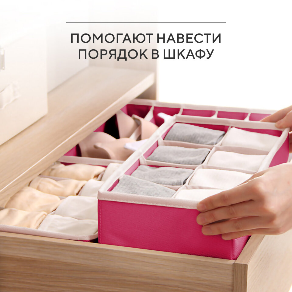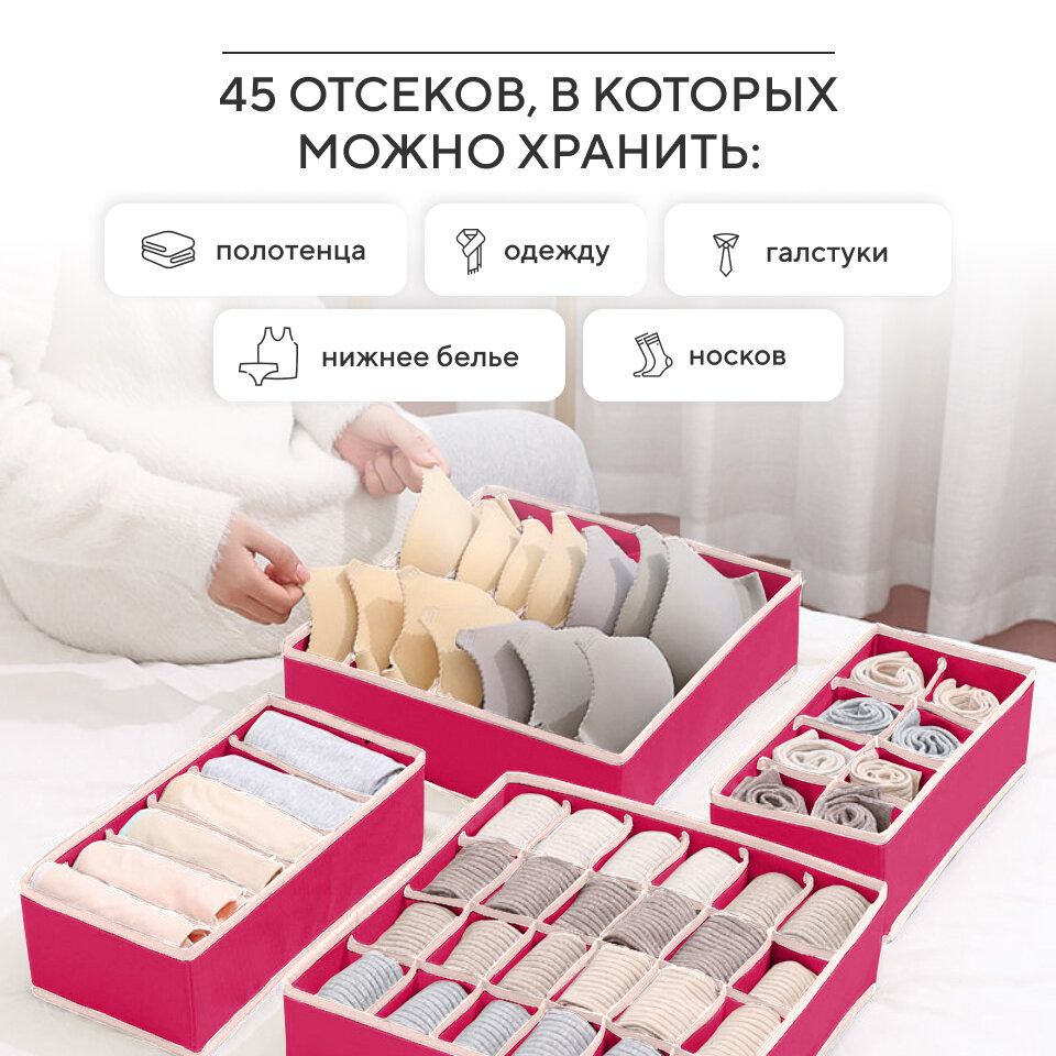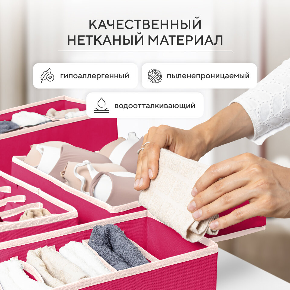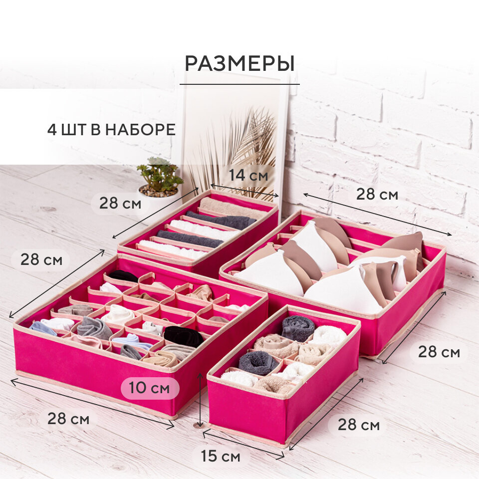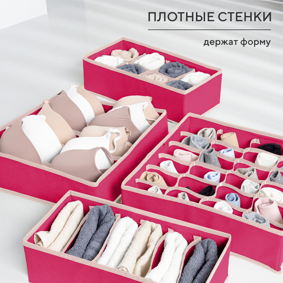 Органайзер для хранения вещей, нижнего белья, бюстгалтеров и носков в шкафу, складной, с разделителями, набор 4 шт, розовый