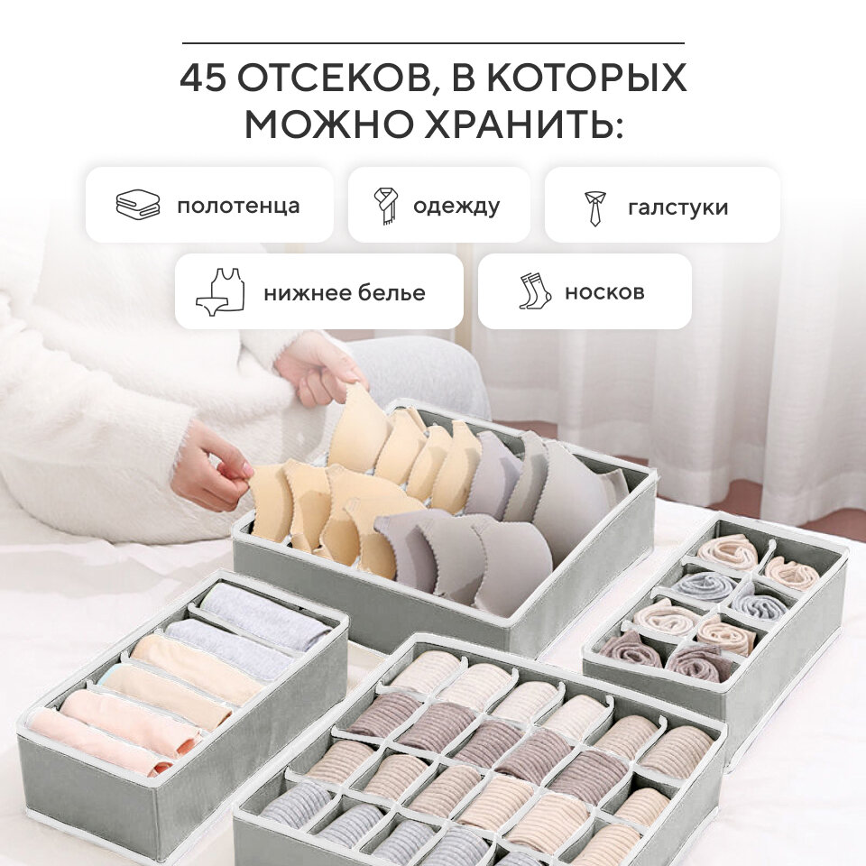 Органайзер для хранения вещей, нижнего белья, бюстгалтеров и носков в шкафу, складной, с разделителями, набор 4 шт, розовый