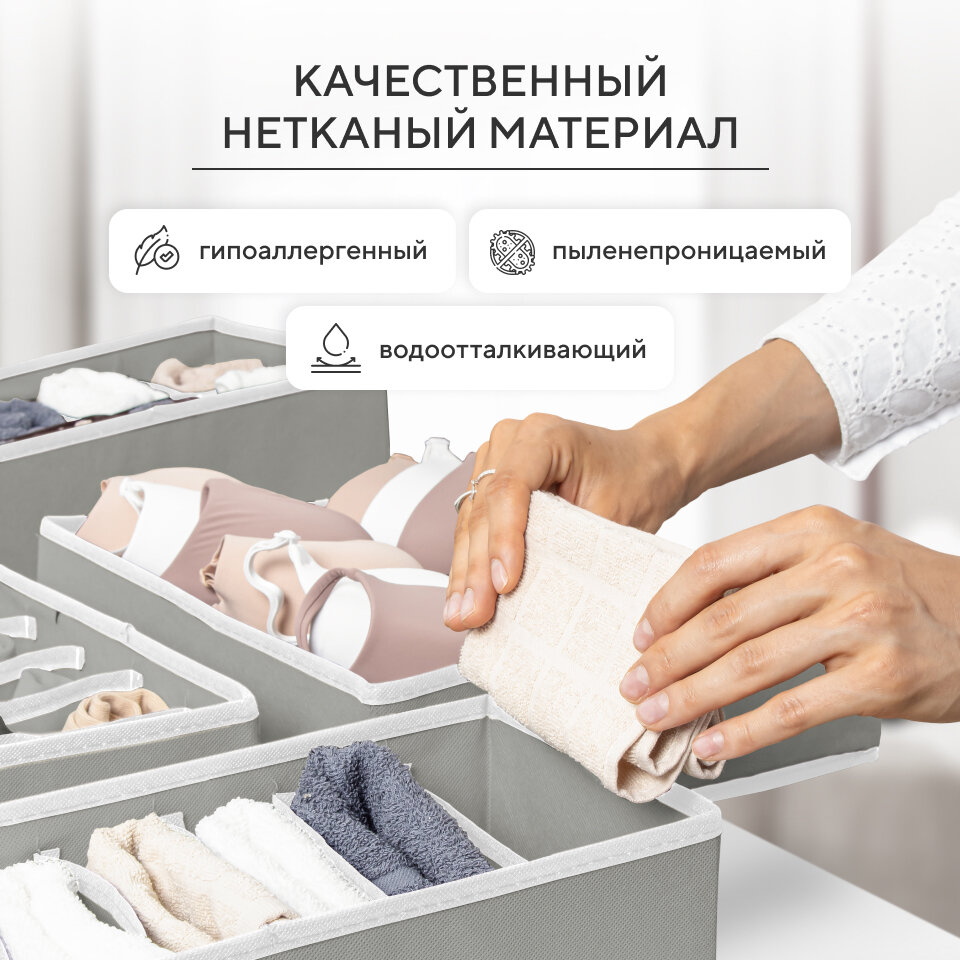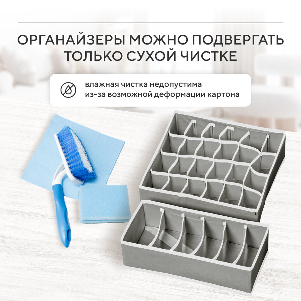 | Комплектация | Кофр для бюстгальтеров 7 ячеек - 1 шт, Кофр для носков и галстуков 8 ячеек - 1 шт, Кофр для нижнего белья 24 ячейки - 1 шт, Кофр для шарфов 6 ячеек - 1 шт |