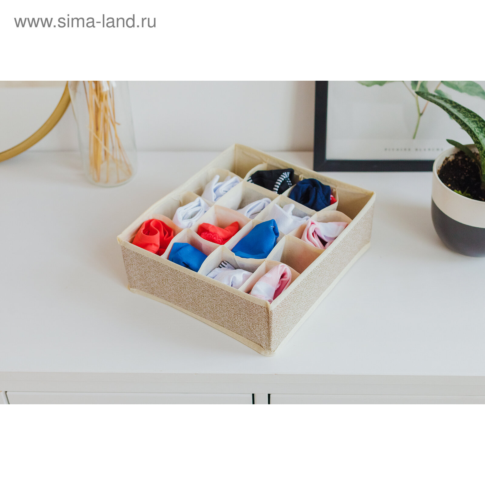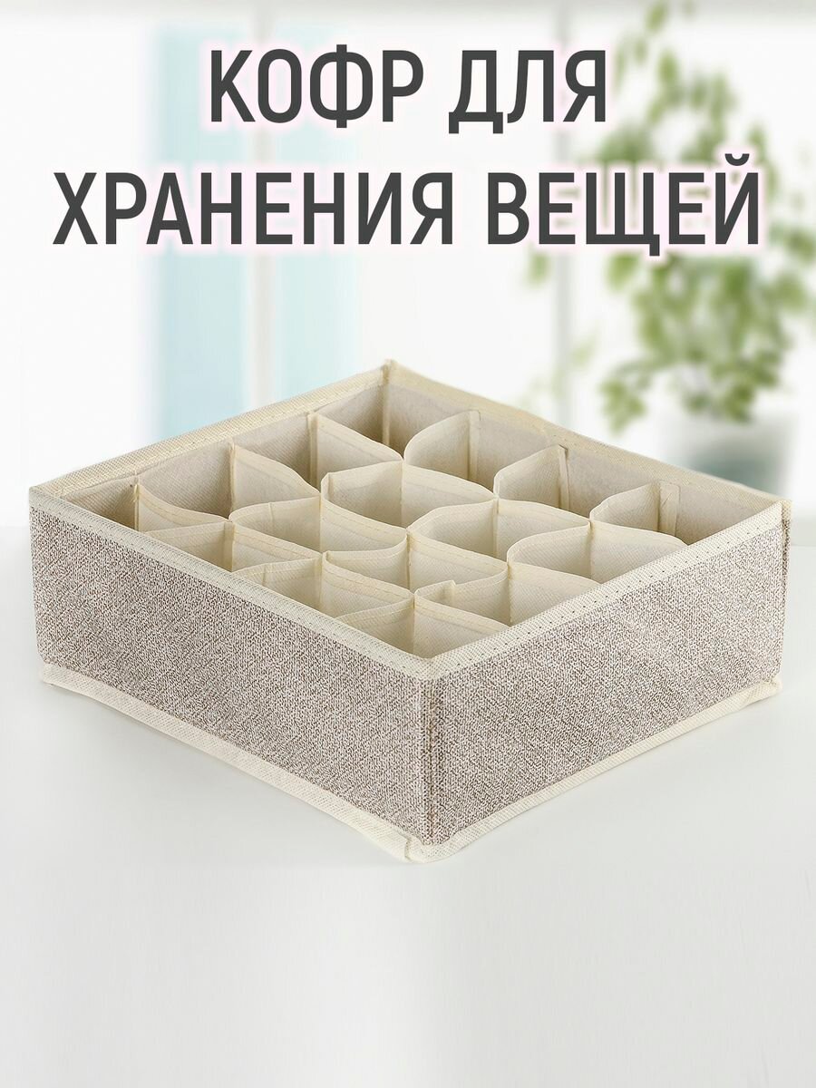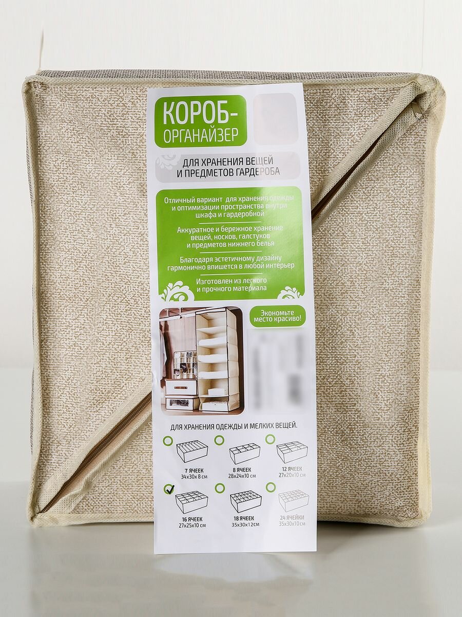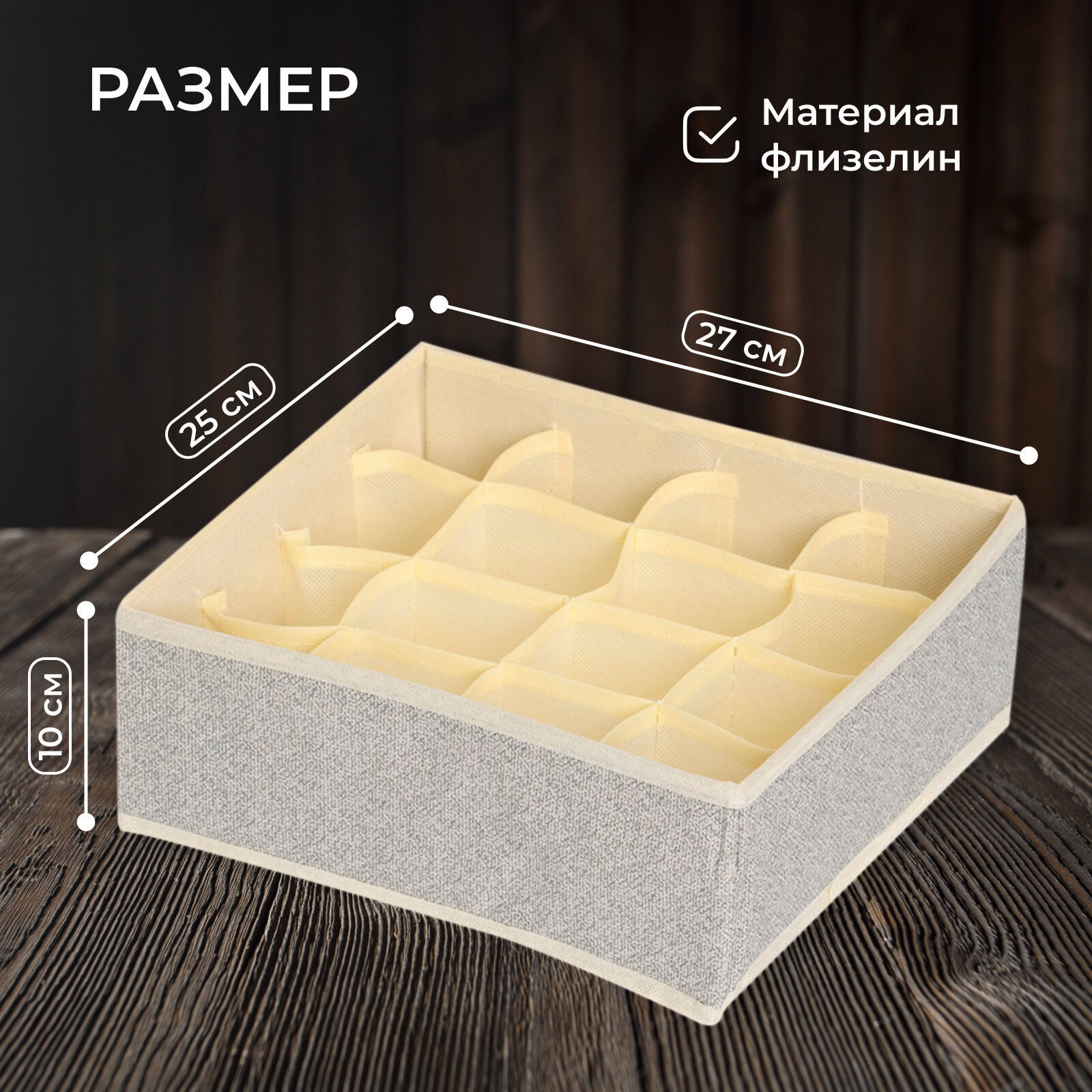Купить Органайзер для белья Доляна Европа, 16 ячеек, 27х25х10 см, цвет бежевый
