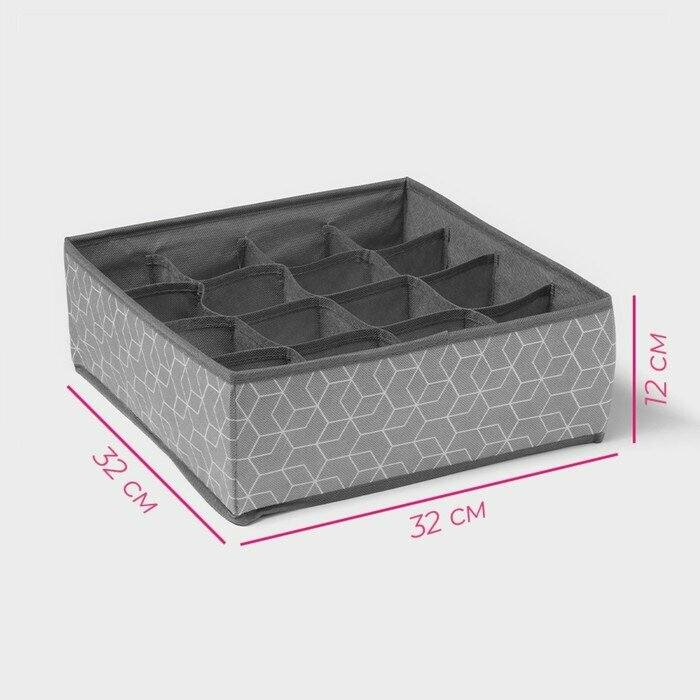 Купить Органайзер для хранения белья Доляна «Фора», 16 ячеек, 32×32×12 см, цвет серый