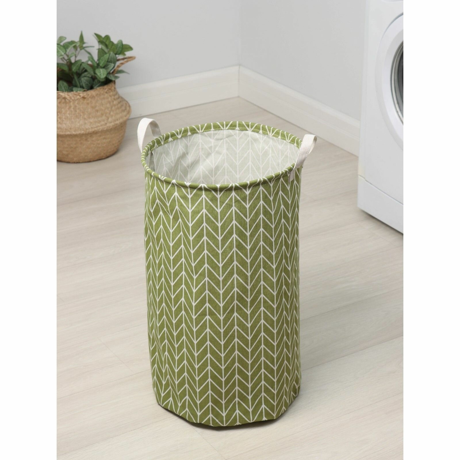 Корзина для белья Доляна «Зигзаг», 35×35×60 см, зелёная