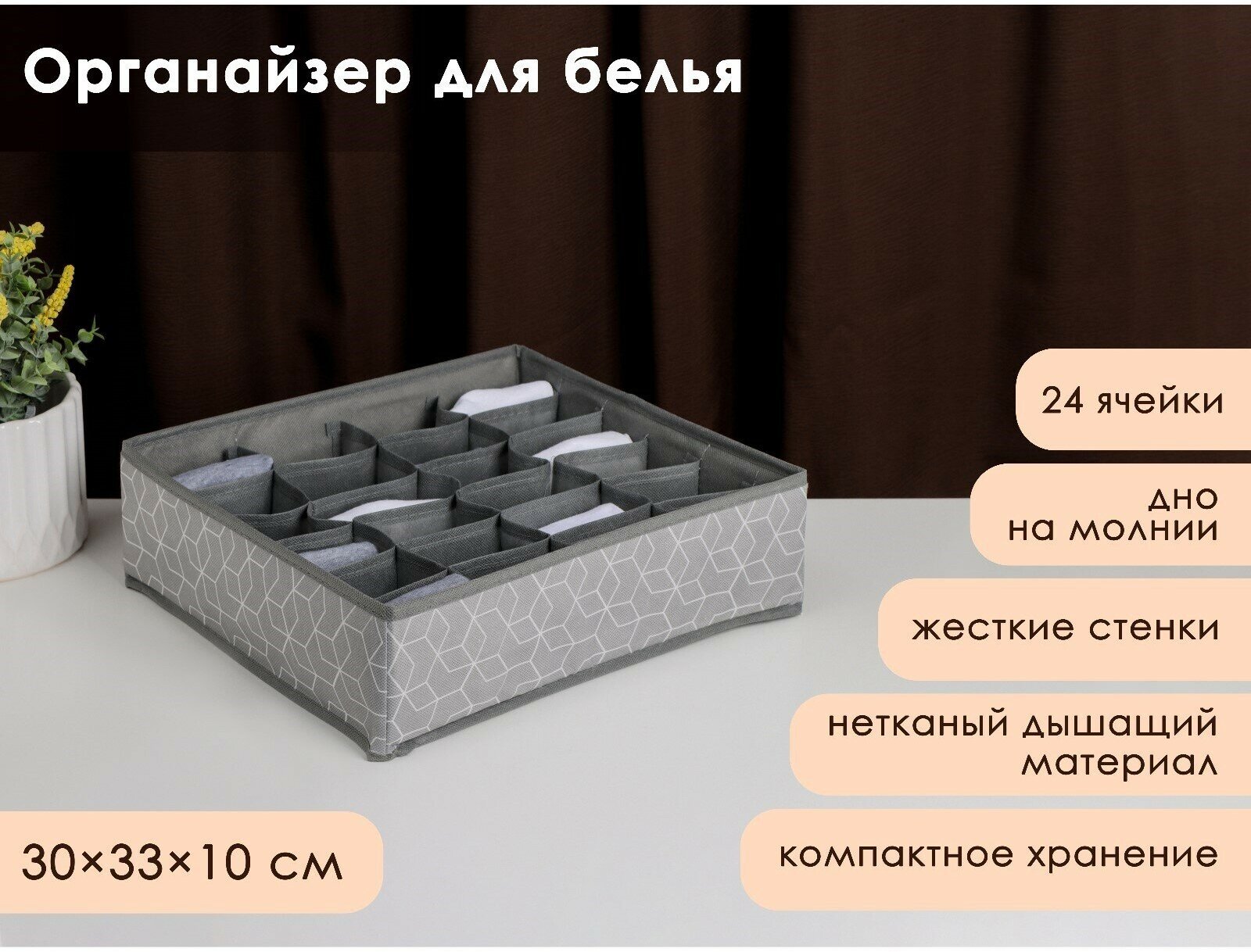 Органайзер для хранения белья Доляна «Смарт», 24 ячейки, 32×32×10 см, цвет серый
