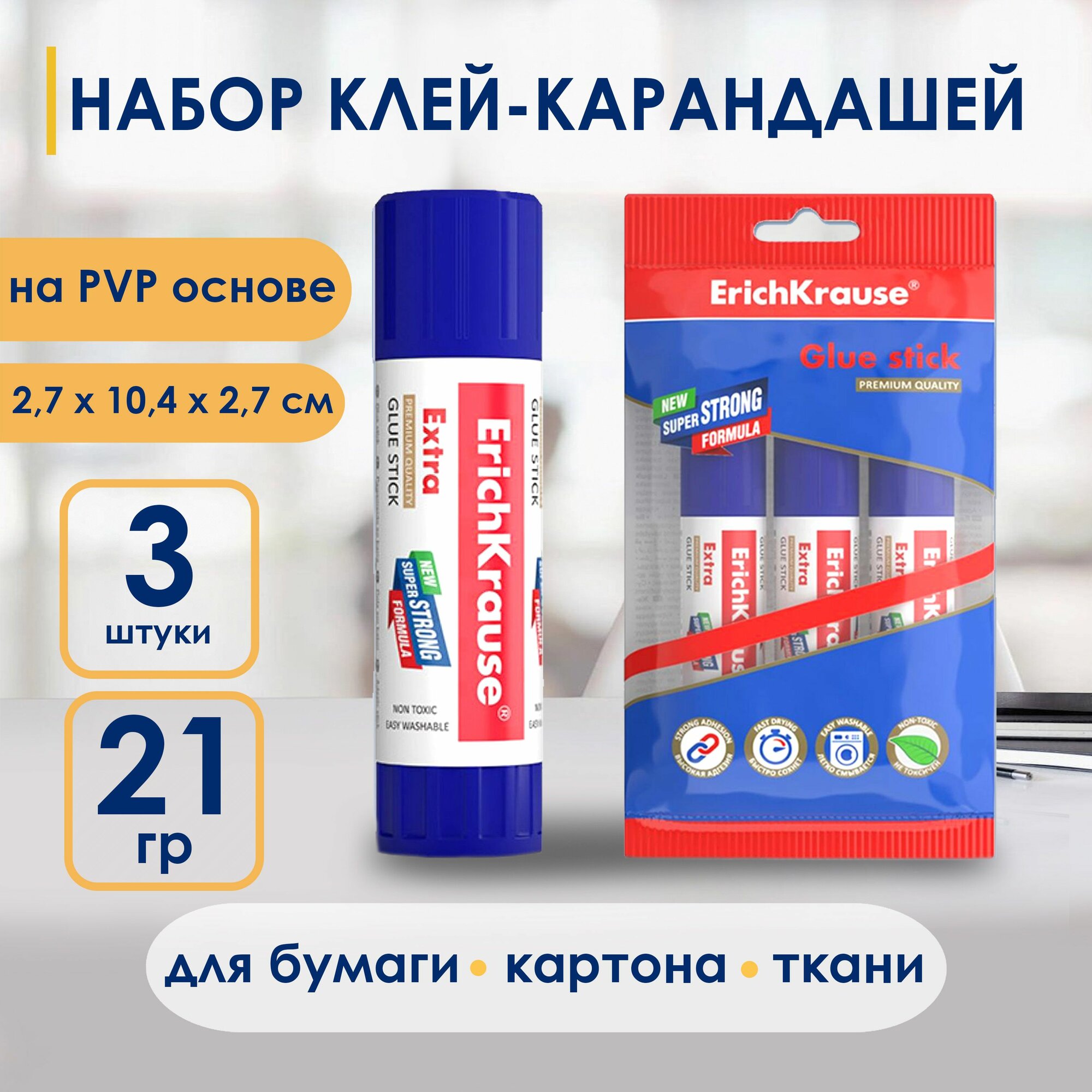 Клей-карандаш ErichKrause Extra 3 шт, 36 грамм