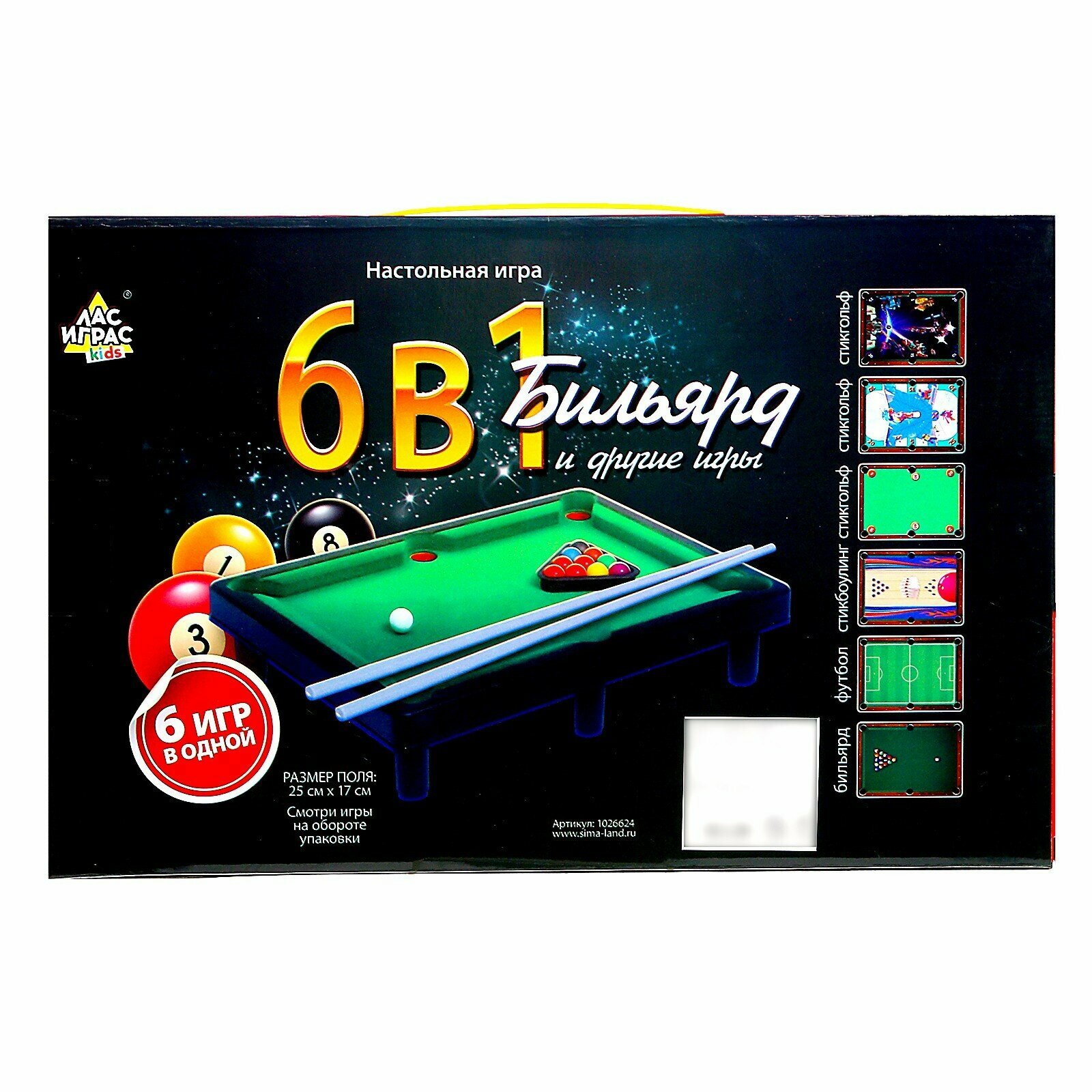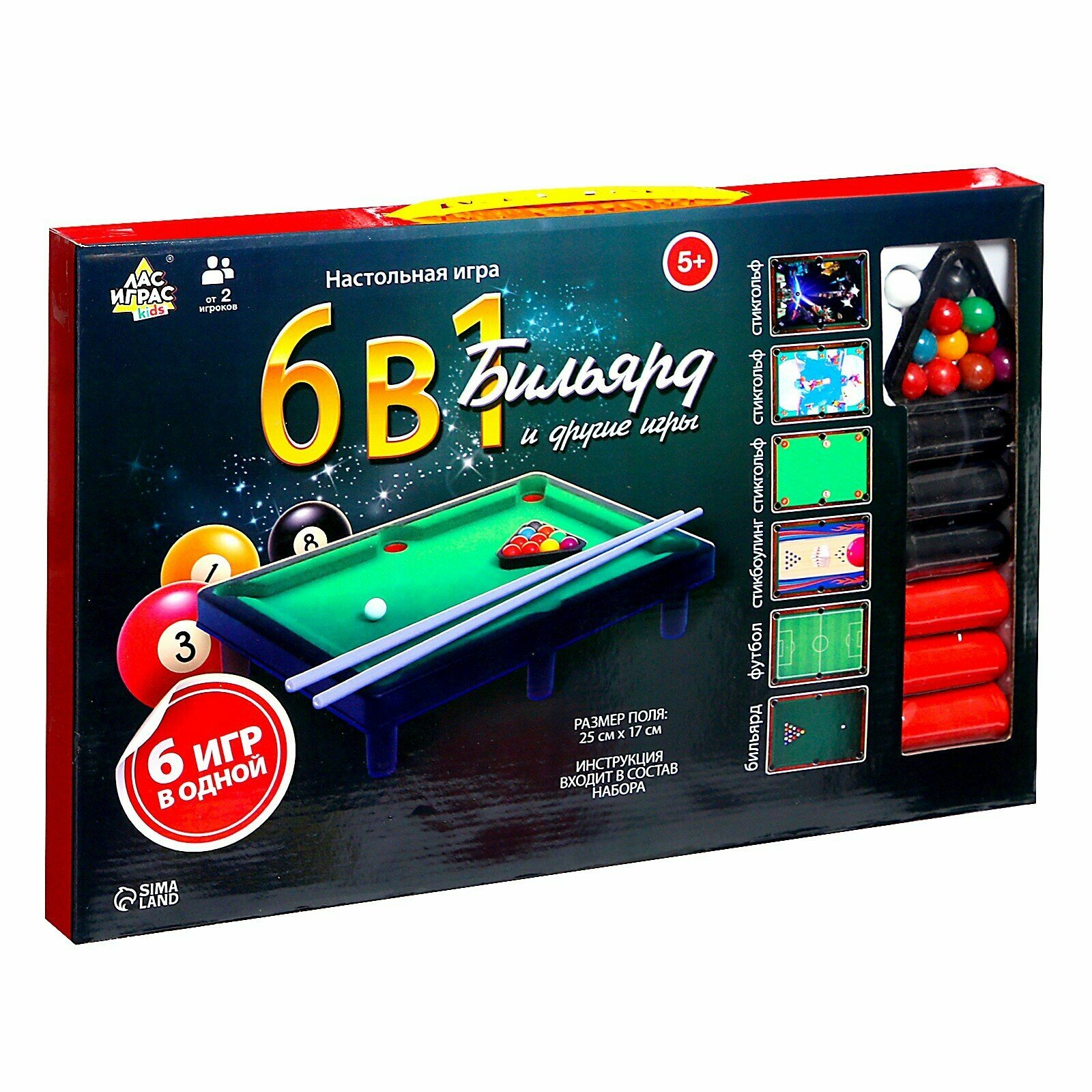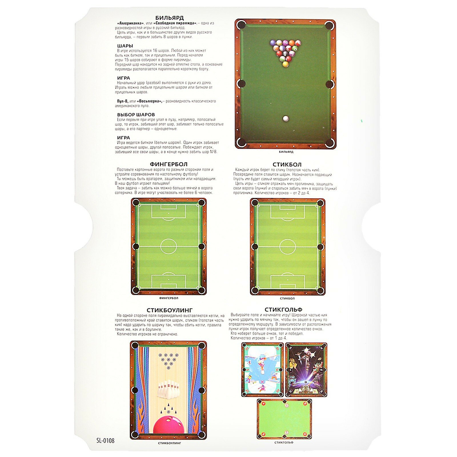 Настольный бильярд «6 в 1: бильярд, стикбол, стикбоулинг, стик гольф, фингербол», от 2 игроков, 5+ интересное: