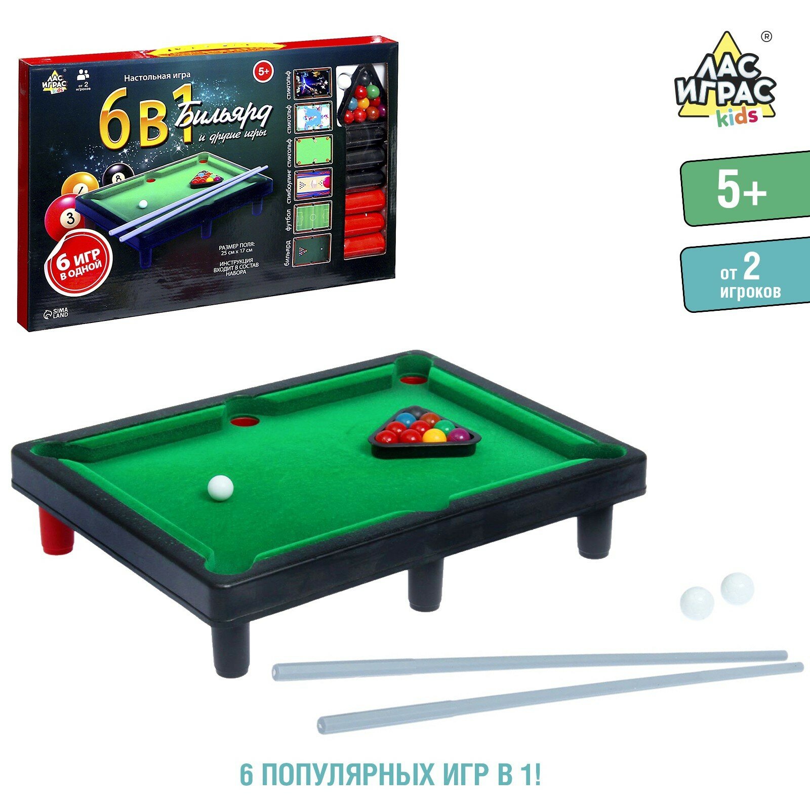 Купить Настольный бильярд «6 в 1: бильярд, стикбол, стикбоулинг, стик гольф, фингербол», от 2 игроков, 5+