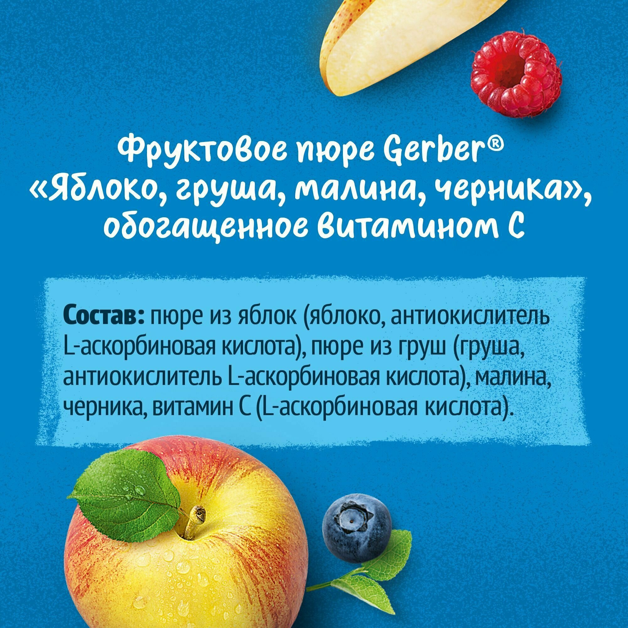 Фруктовое детское пюре Gerber яблоко-груша-малина-черника с 6 месяцев 90 г 4 шт