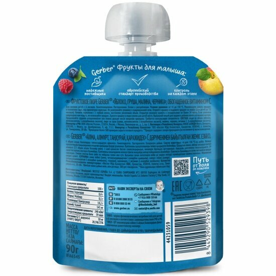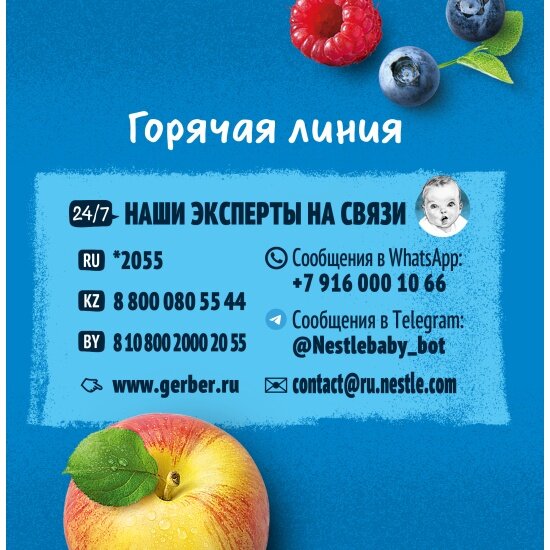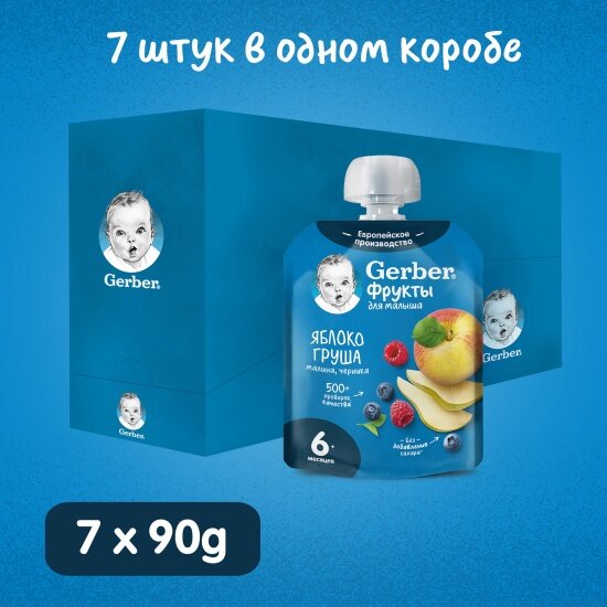 Фруктовое детское пюре Gerber яблоко-груша-малина-черника с 6 месяцев 90 г 7 шт интересное: