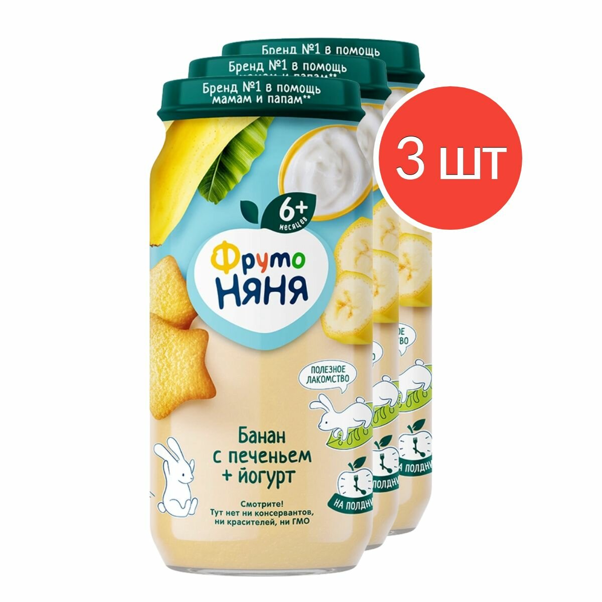 Купить Пюре ФрутоНяня из бананов с йогуртом и печеньем для питания детей раннего возраста, 250 г,3 шт