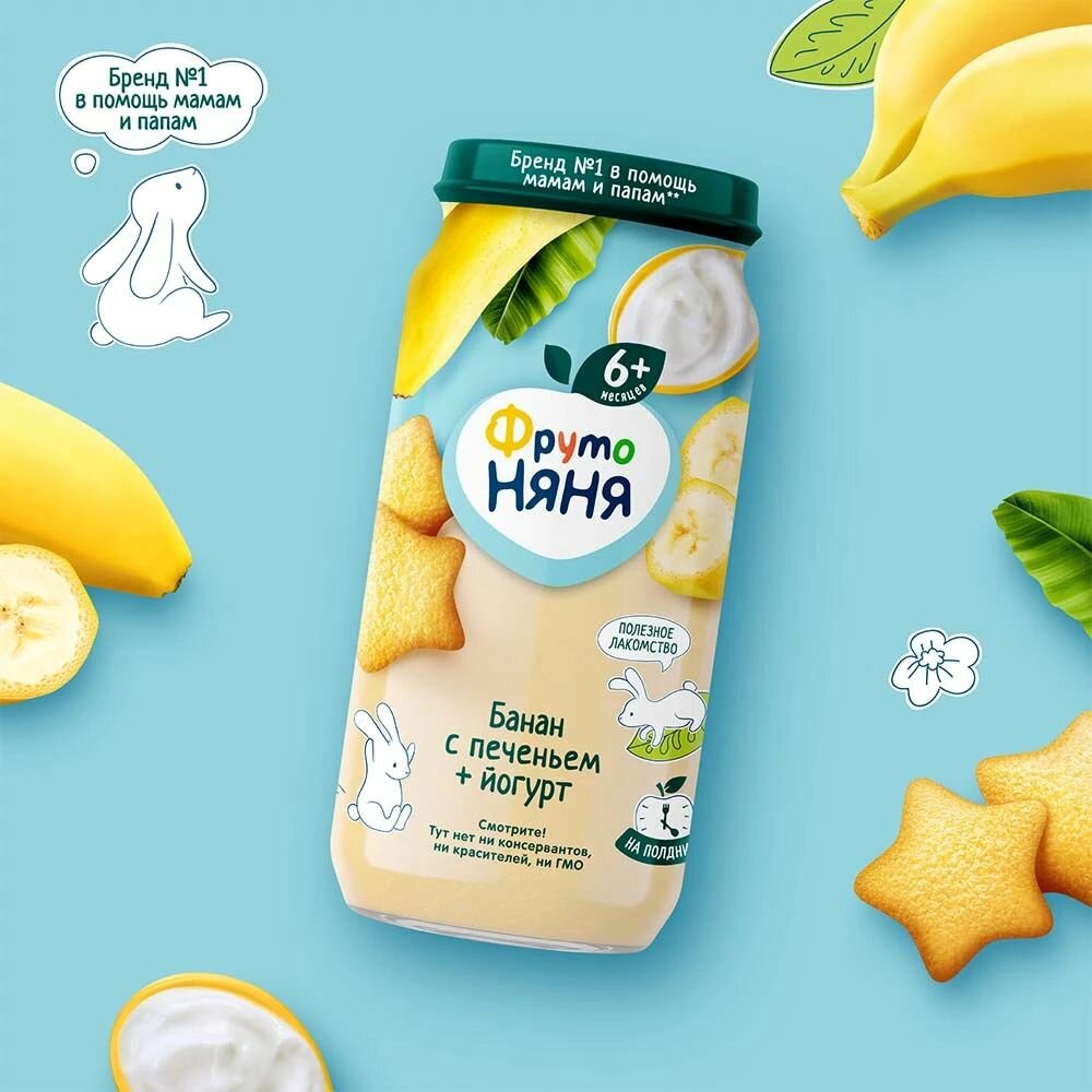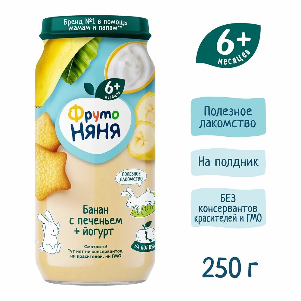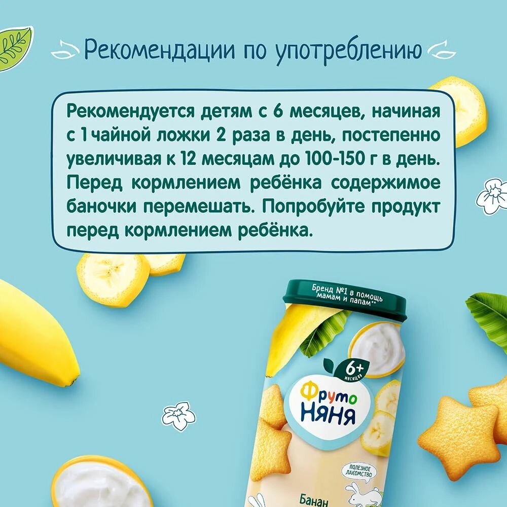Пюре ФрутоНяня из бананов с йогуртом и печеньем для питания детей раннего возраста, 250 г,3 шт интересное: