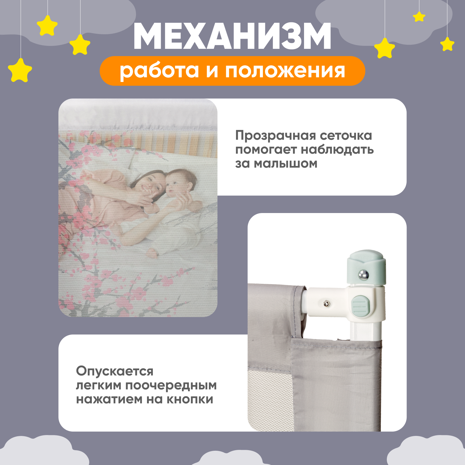 Барьер защитный для кровати от падений, бортик безопасности малыша 180 см SOLMAX, серый