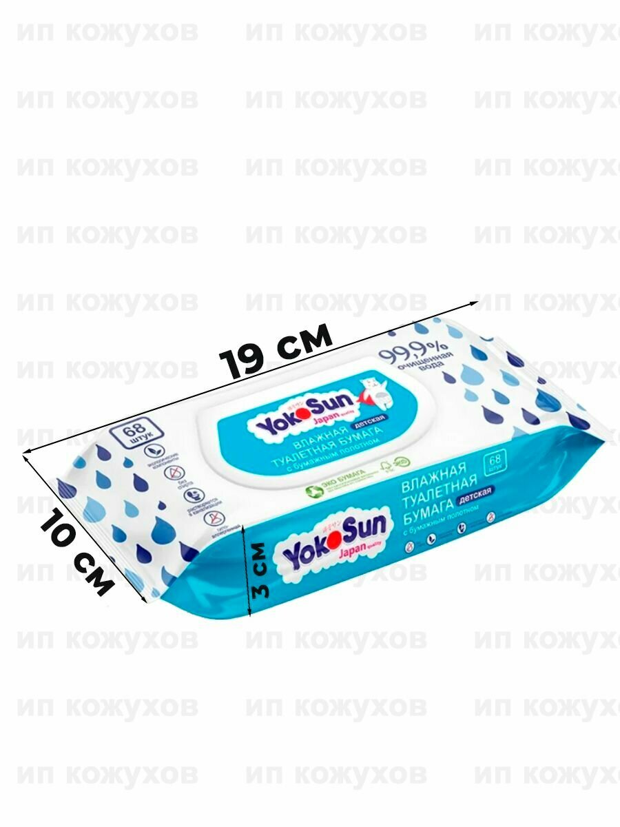 Влажная туалетная бумага детская с бумажным полотном YokoSun, пластиковая крышка, 68 шт., 1 уп.