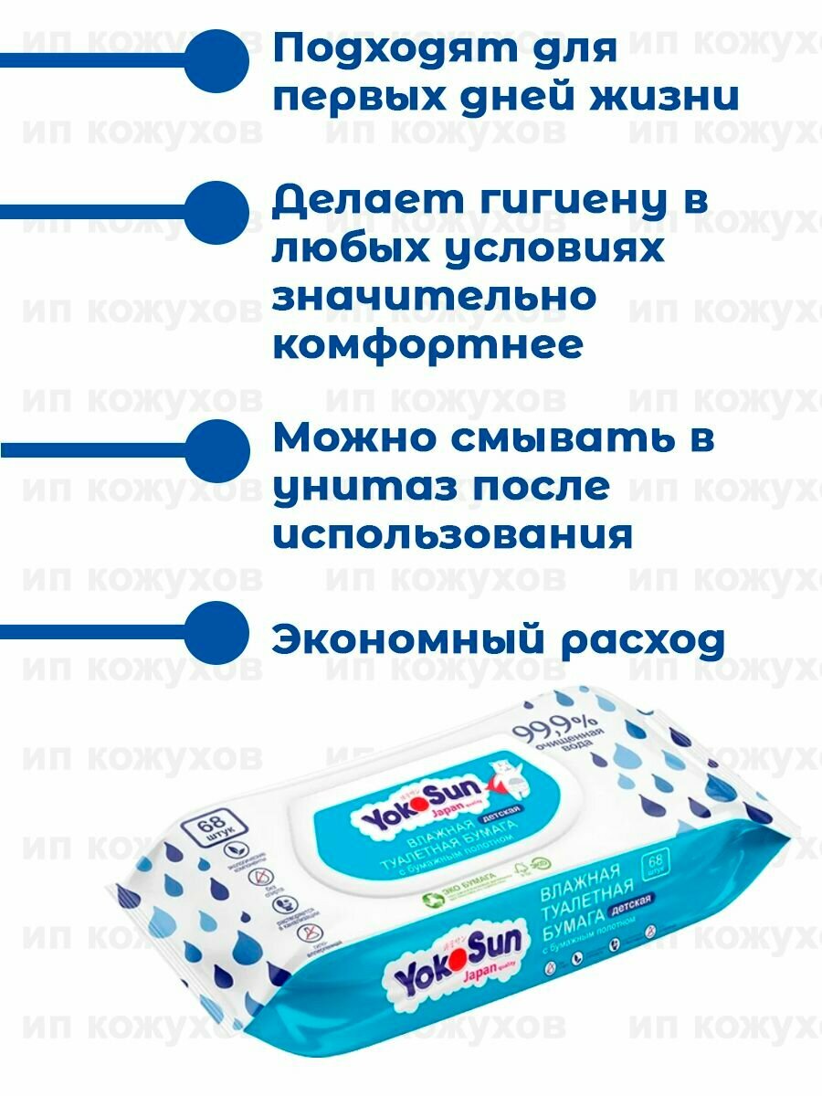 Влажная туалетная бумага Yokosun детская , 68 шт