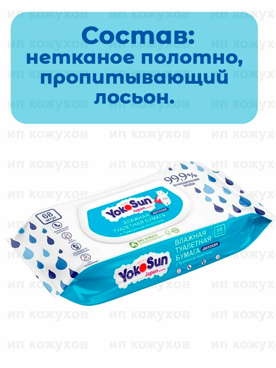 Влажная туалетная бумага Yokosun детская , 68 шт