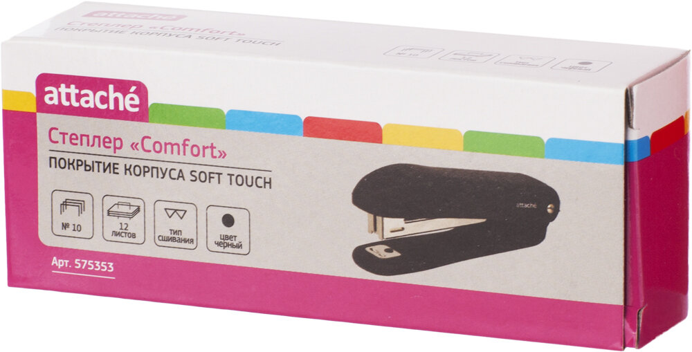 Купить Степлер Attache Comfort до 12 лист., soft touch покрыт,черн,№10 антистеп 575353