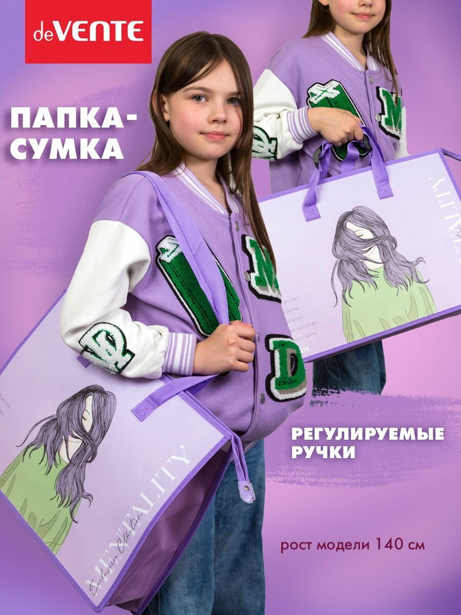 Папка на молнии deVENTE для рисунков и чертежей, А3 46,7х33,8 см, пластиковая, регулируемые ручки, расширение 10см (3075208)