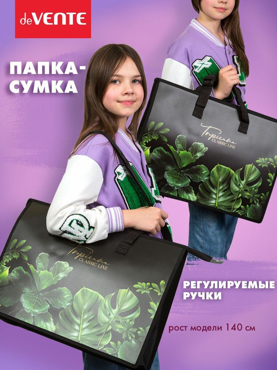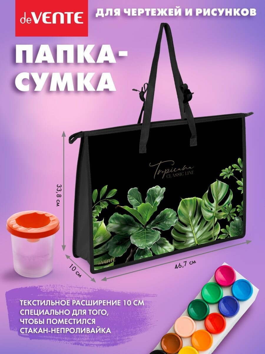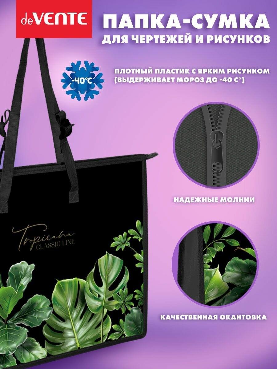 Папка для черчения и рисунков А3, 467 х 338 х 100 мм, с ручками, молния, пластик, deVENTE Tropicana, внутренний карман