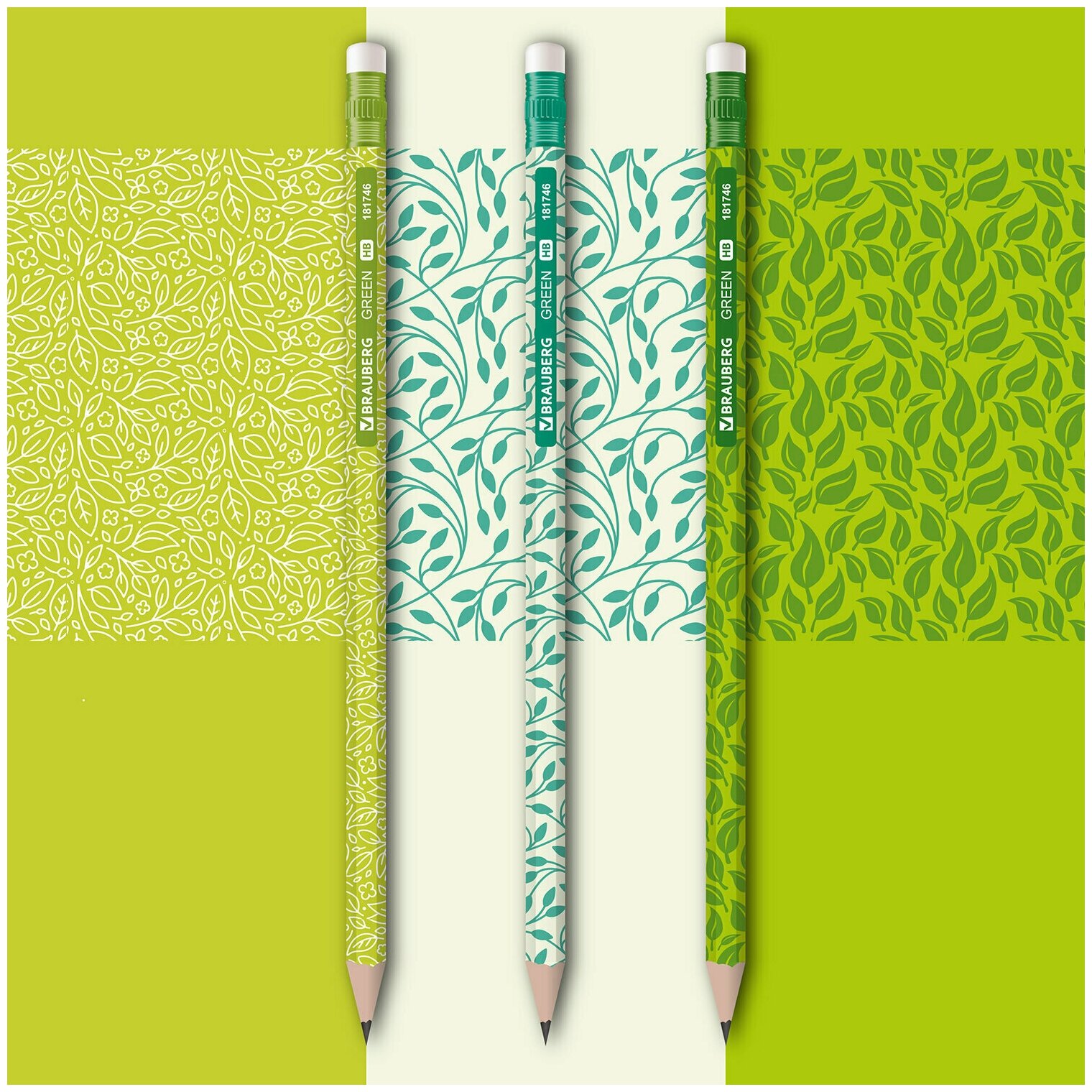 Купить Карандаши простые чернографитные Hb с ластиком, Brauberg Green, Выгодный Комплект 72 штуки, 880761