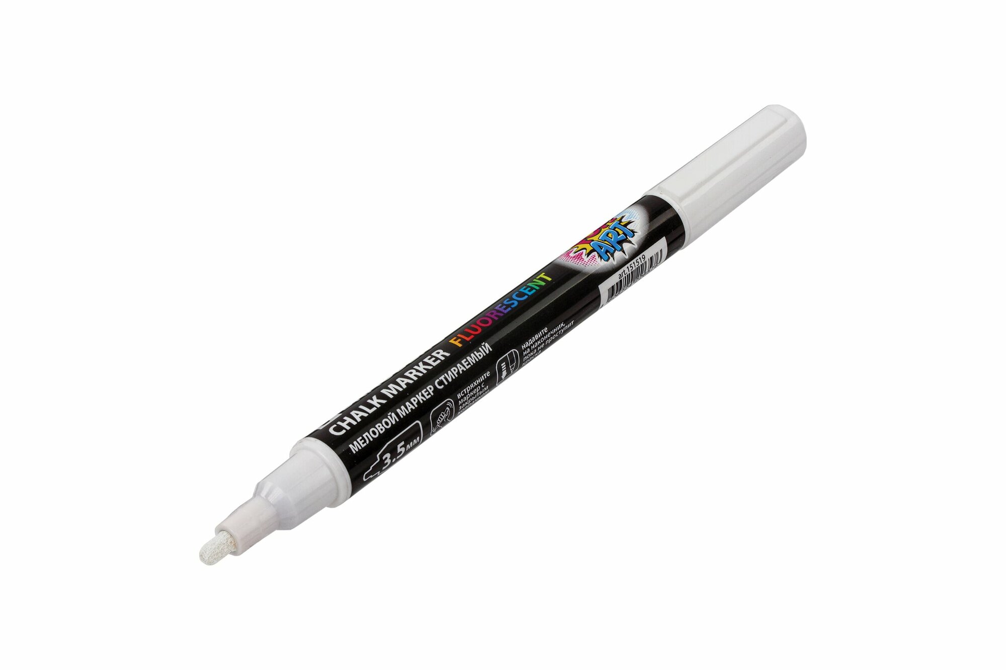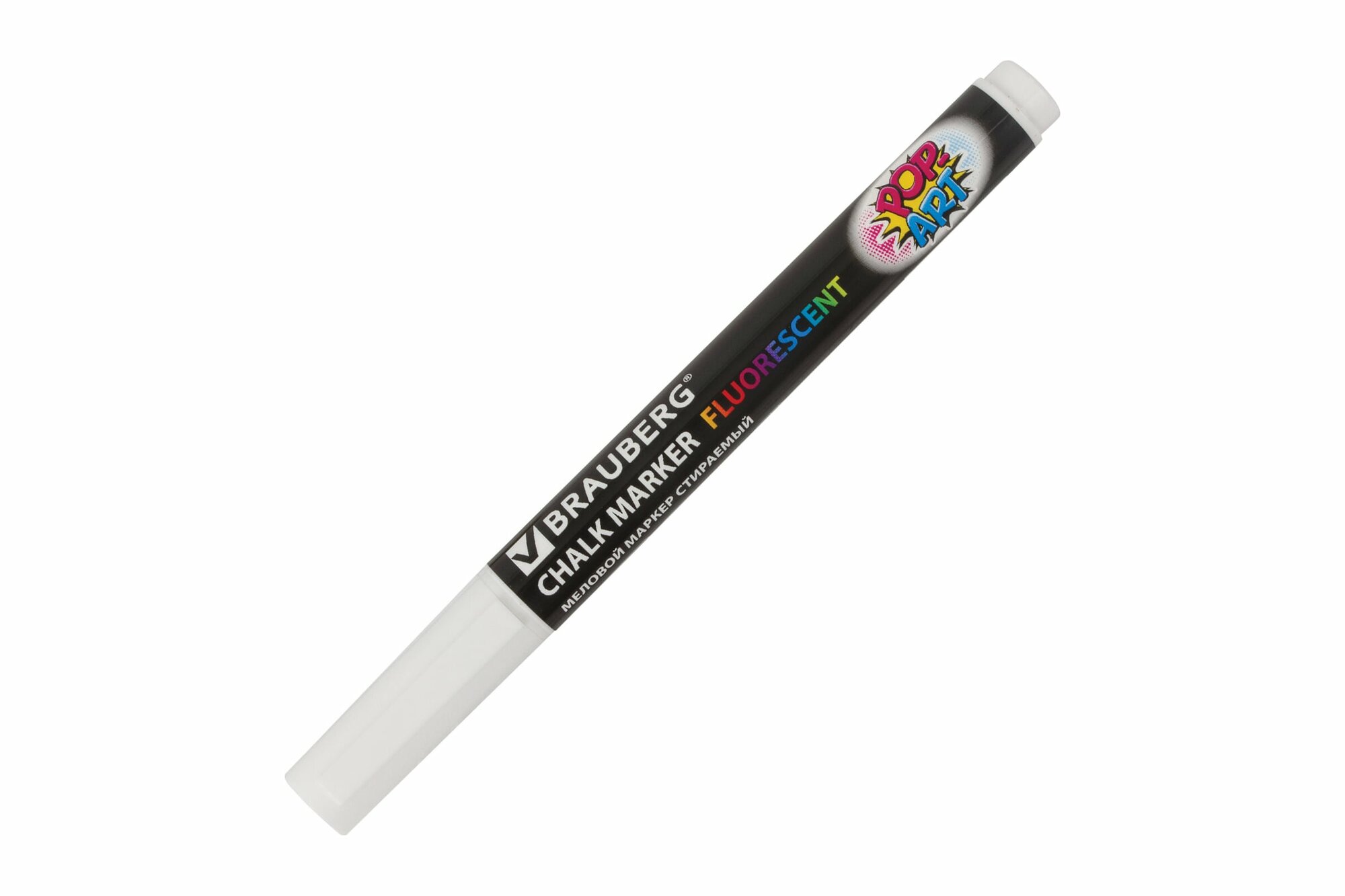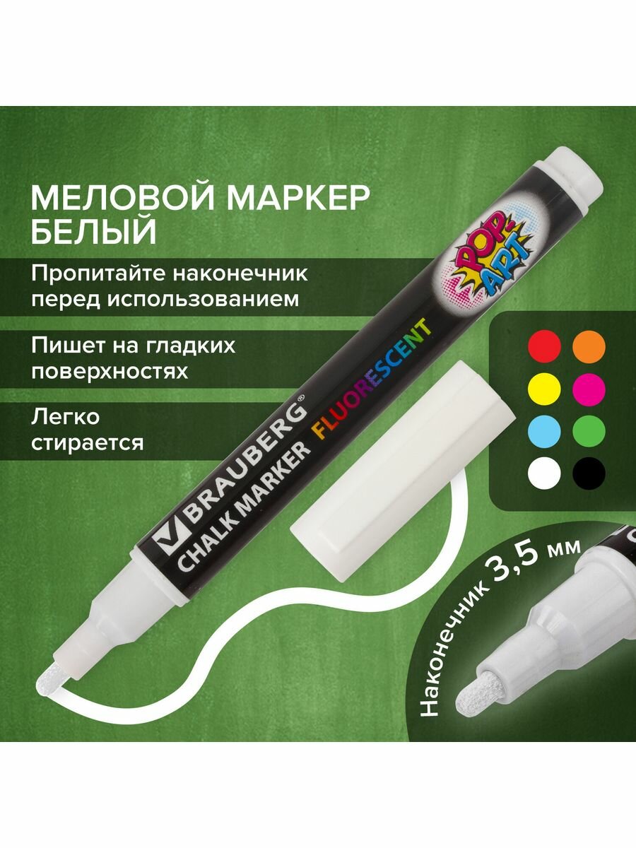 Маркер / фломастер меловой стираемый для доски Pop-art Белый, 3,5 мм, стираемый, для гладких поверхностей, Brauberg, 151519