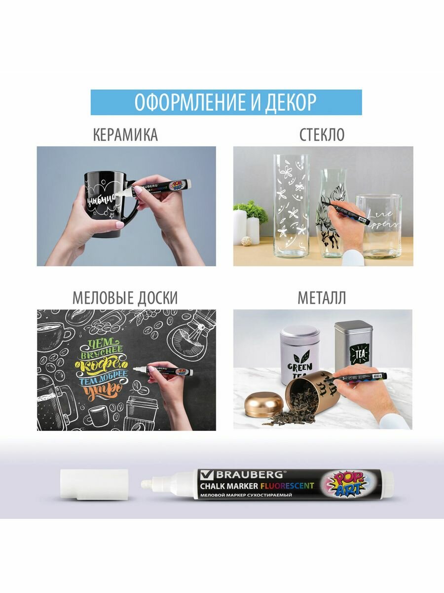 СохранитьМаркеры / фломастеры меловые стираемые для доски белые, Brauberg Pop-art, 3,5 мм, Выгодный Комплект 10 штук, 880740 интересное: