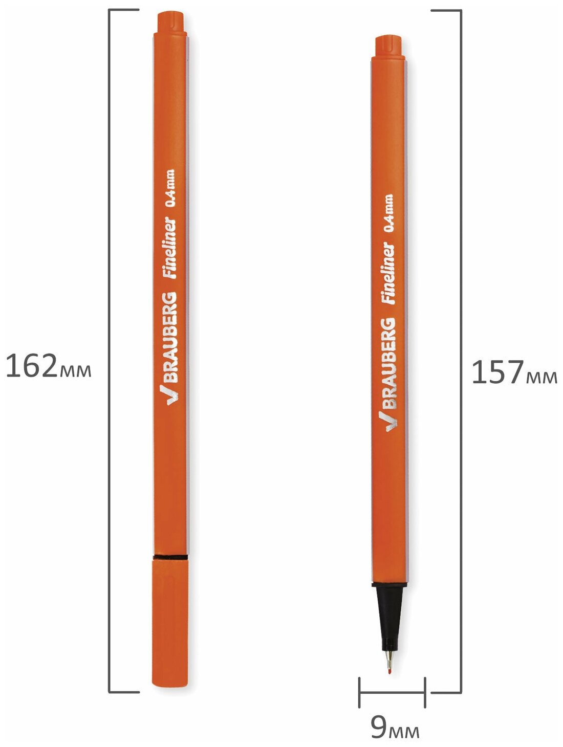 Ручка капиллярная Brauberg Aero, трехгранная, металлический наконечник, 0,4 мм, оранжевая (142249)