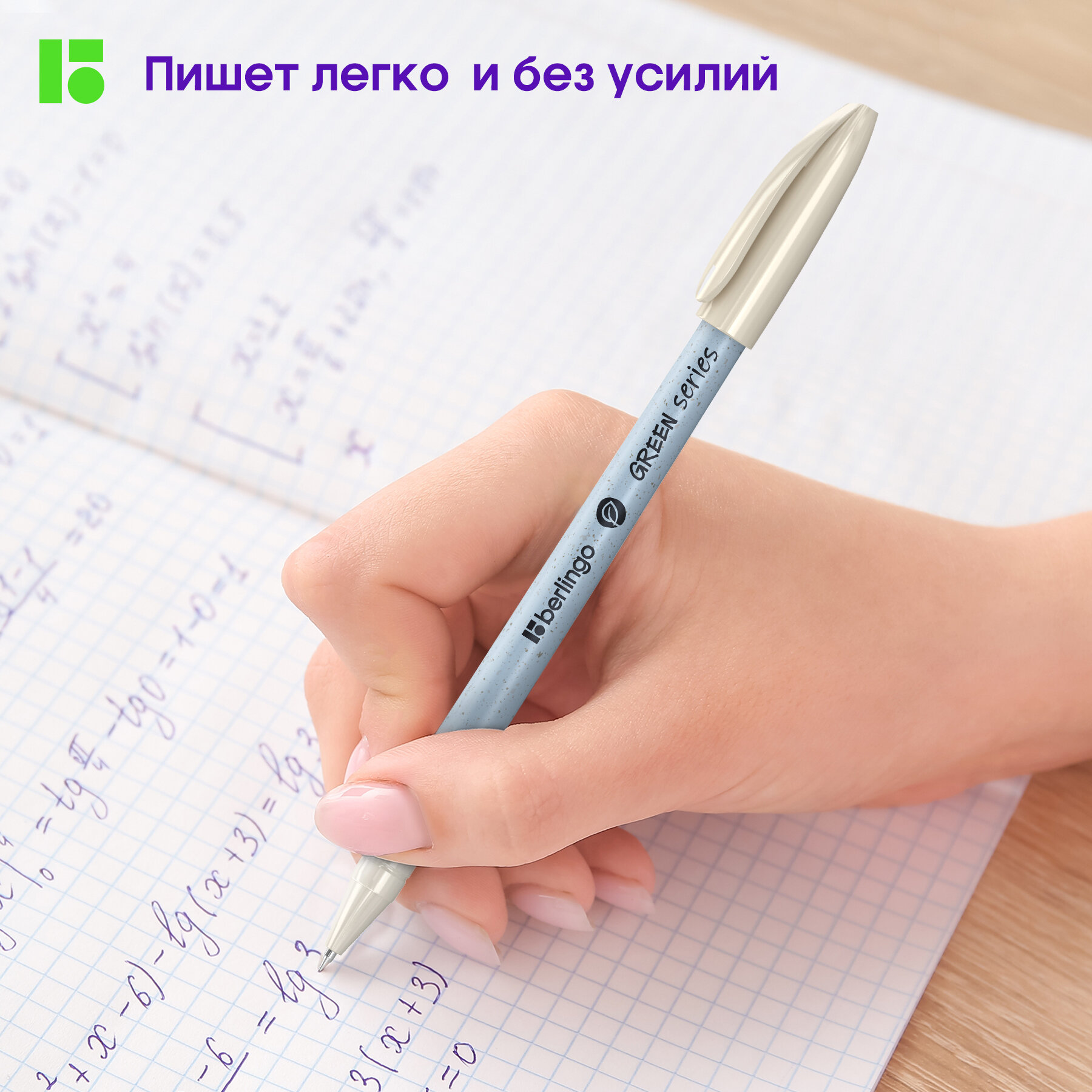 Купить Ручки шариковые синие набор для школы 4 штуки/ комплект Berlingo "Green Series" с круглым пластиковым корпусом /линия письма 0,7 мм, smart ink (легкое, мягкое касание бумаги), канцелярия для офиса