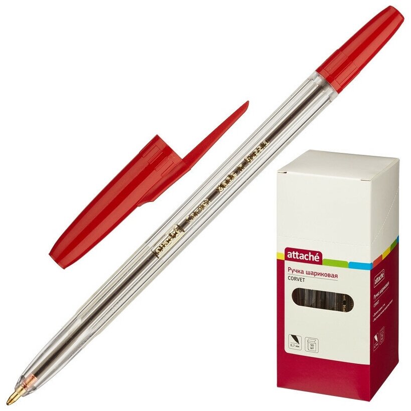 Ручка шариковая Attache Corvet (0.7мм, красная, корпус прозрачный), 50шт.