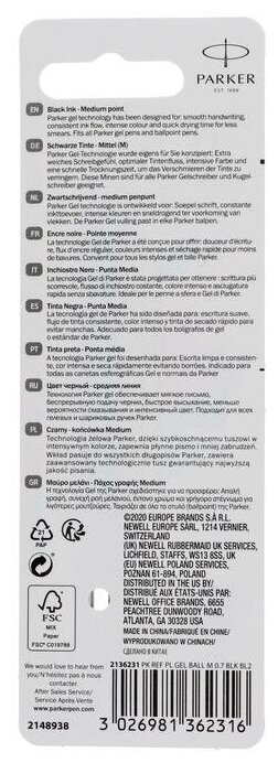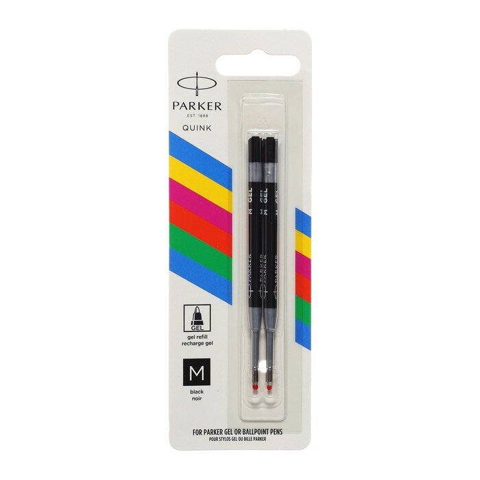 Стержень гелевый Parker Quink Gel, цвет Black, толщина линии M (0.7), в блистере 2 шт.