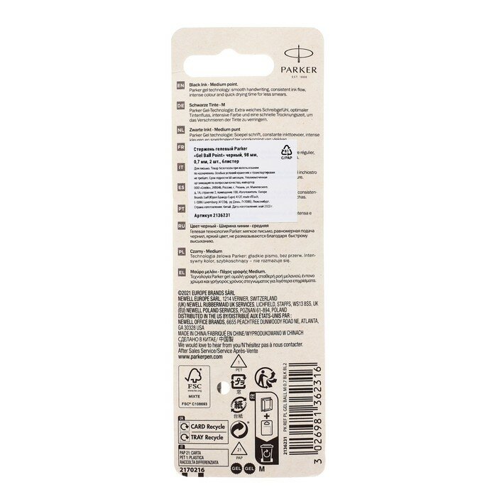 СохранитьСтержень для гелевой ручки PARKER Gel Ball Point Z10 М, 0.7 мм, 98 мм (2 шт.) черный интересное: