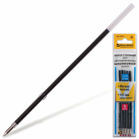 Стержни шариковые BRAUBERG, набор 5 шт., 107 мм, синие, узел 0.7 мм, линия письма 0.35 мм, 170192 интересное: