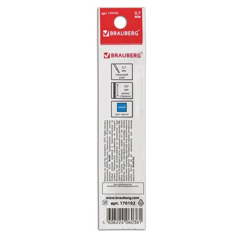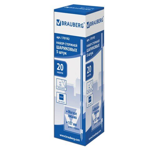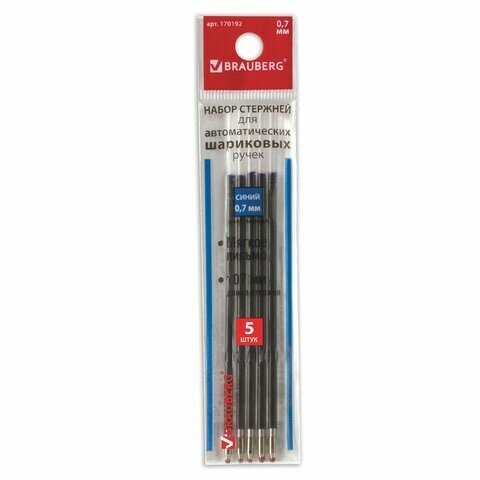 Стержни шариковые BRAUBERG, набор 5 шт., 107 мм, синие, узел 0,7 мм, линия письма 0,35 мм, 170192 (цена за 1 ед.товара)