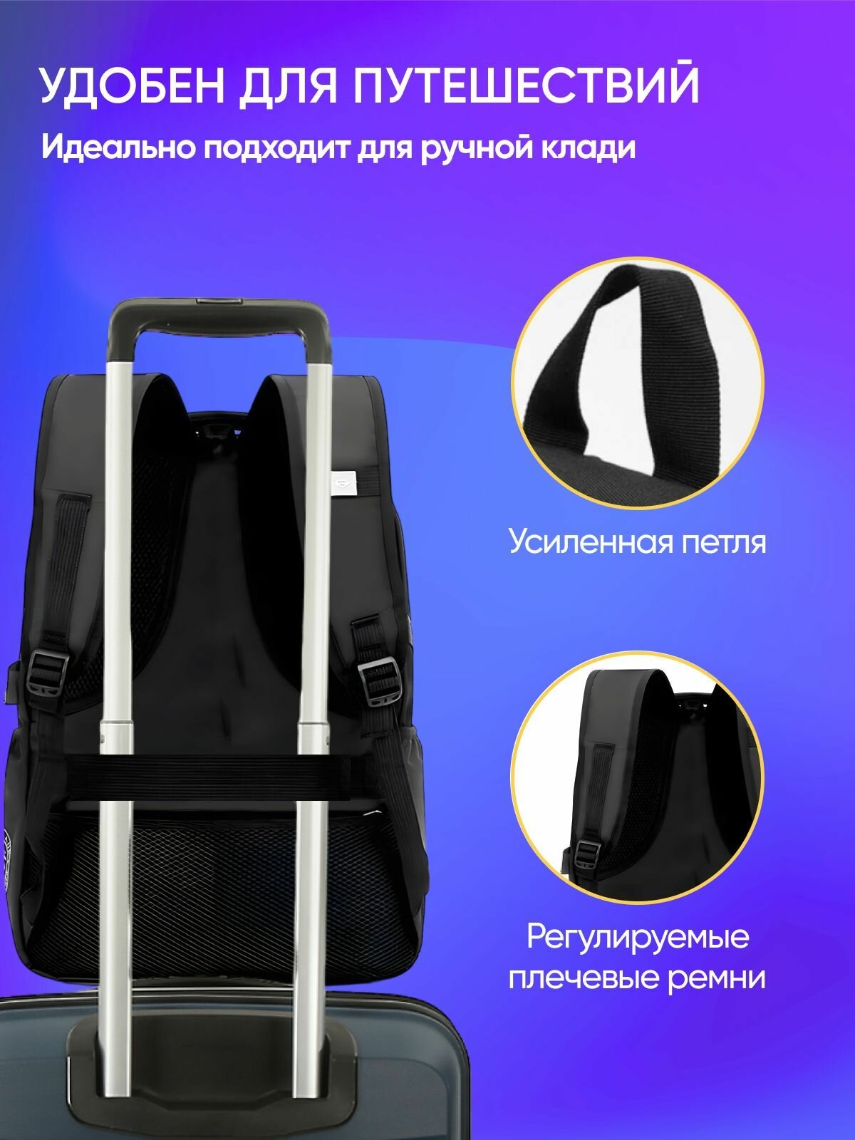 | Особенности | вентилируемая спинка / разделитель в главном отделении / разъем USB |