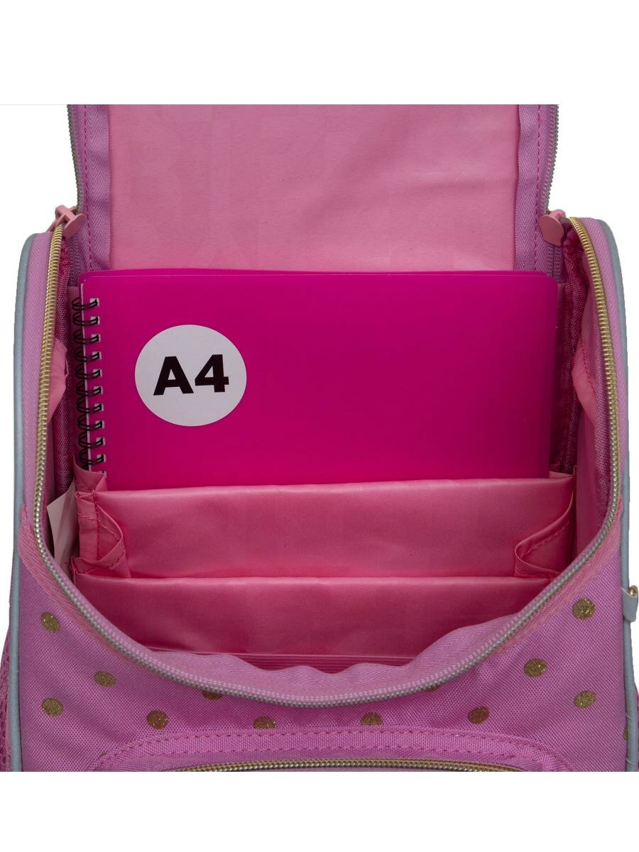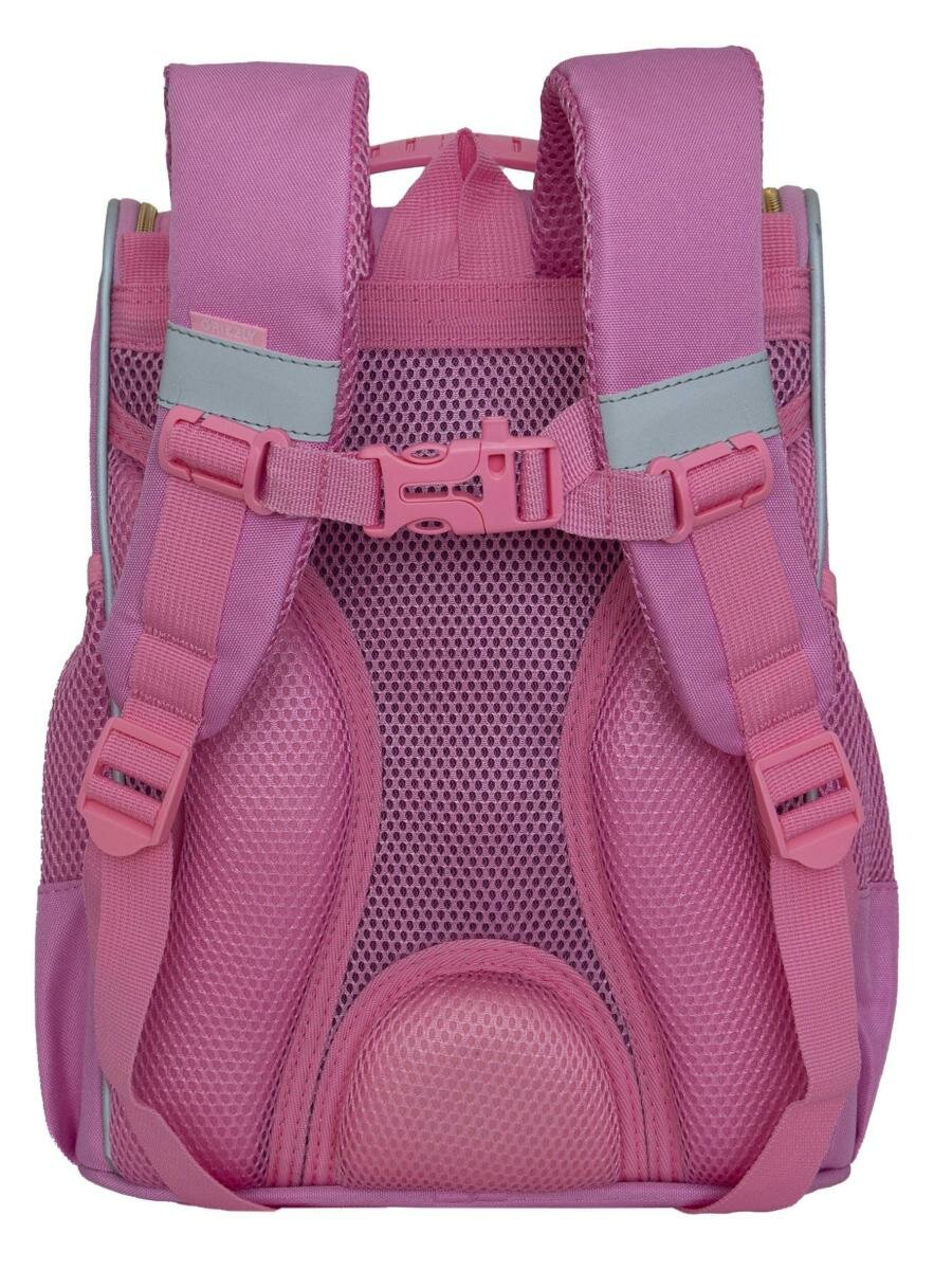 Купить Школьный ранец с ортопедической спинкой GRIZZLY RAm-484-3/2 розовый с мешком для обуви, грудная стяжка, 722 грамм, 33x25x13см